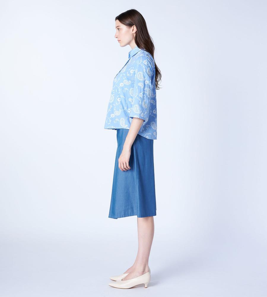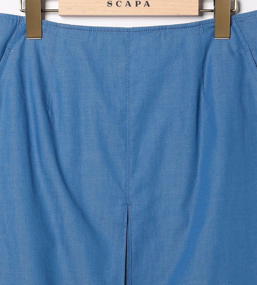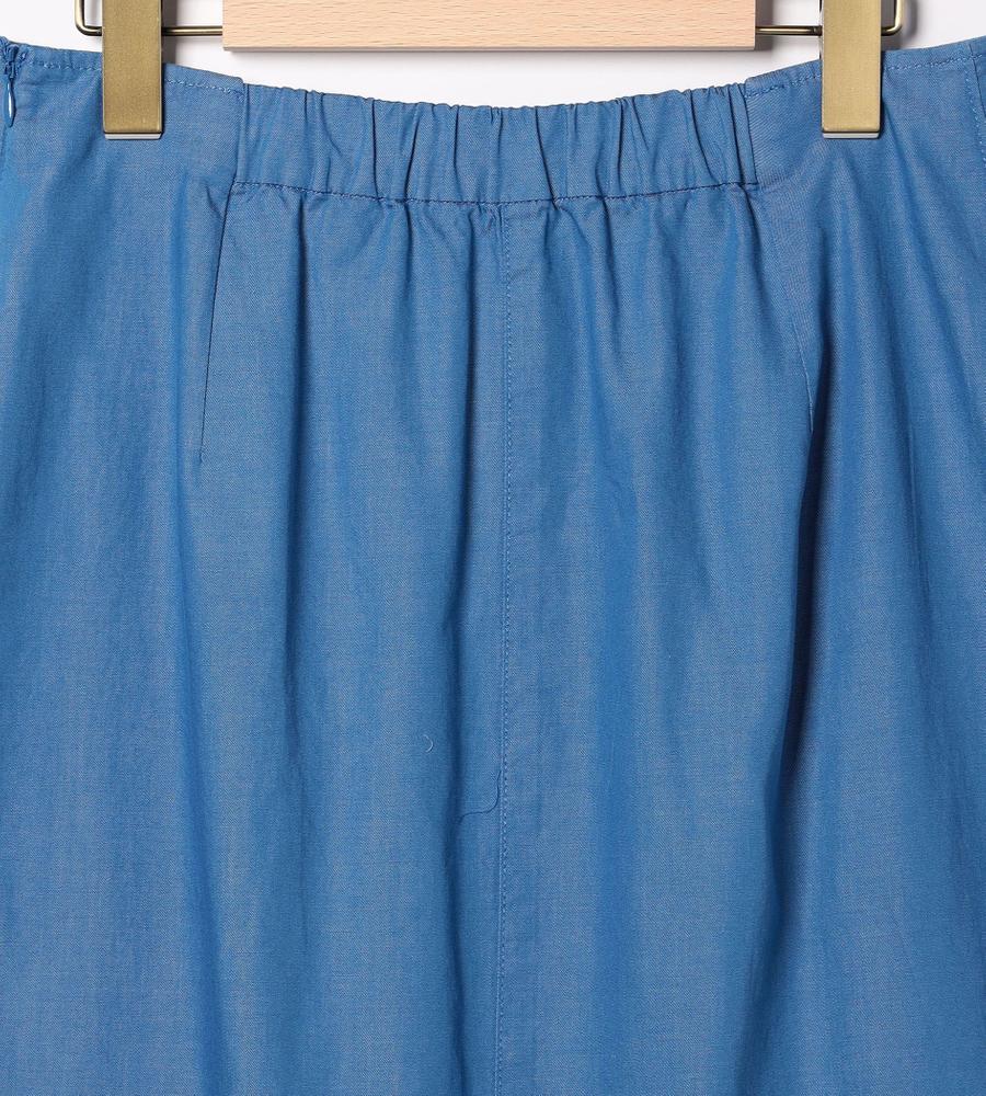 大人の気品とカジュアルさを併せ持ったライトダンガリー生地のスカート。さらりとした質感や微光沢感、セミフレアシルエットやボックスプリーツなどがポイントです。快適なバックゴム仕様のウエスト、便利なサイドポケットも魅力。無地はもちろん柄物のトップスとも相性がよく、様々なコーディネートに活躍します。