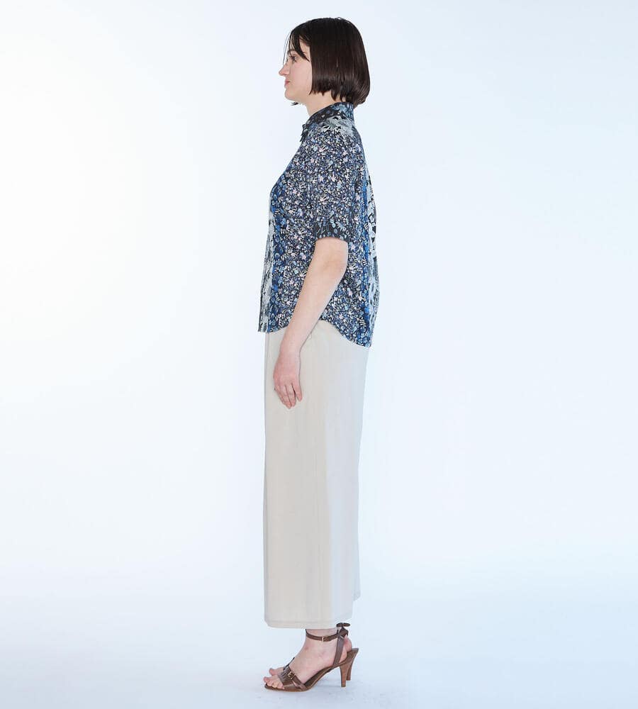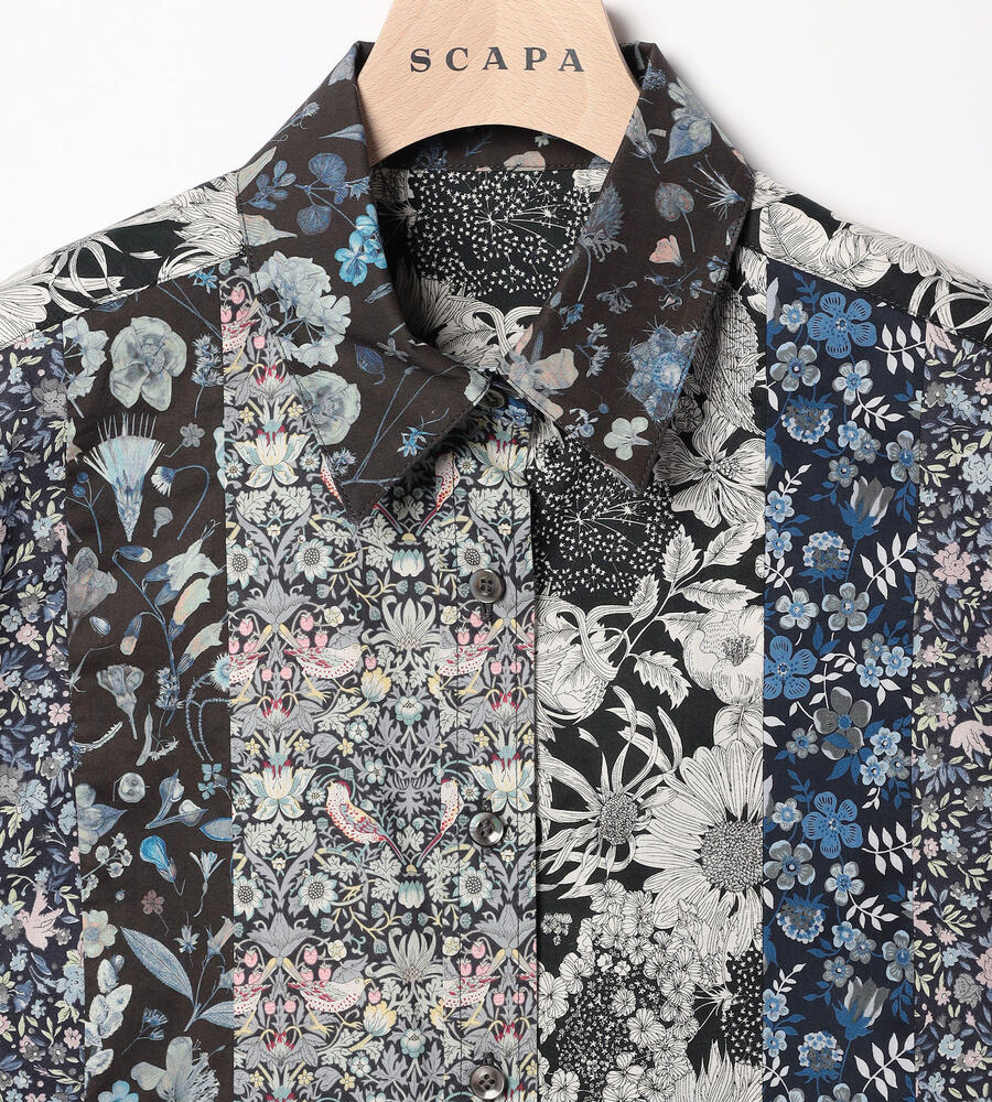 繊細なタッチで描いた複数のフラワーを組み合わせたパッチワークデザインのブラウス。配色は落ち着いた印象にまとまっており、存在感がありながら上品さも漂います。縦ラインの切り替えでスタイルはすっきり。シルエットのゆとりや着丈はほどよく、パンツともスカートともバランス良くまとめられます。
