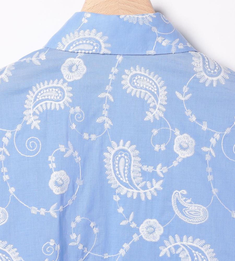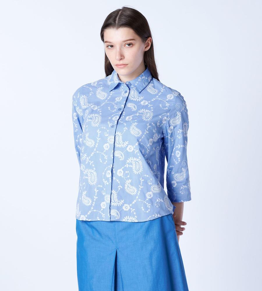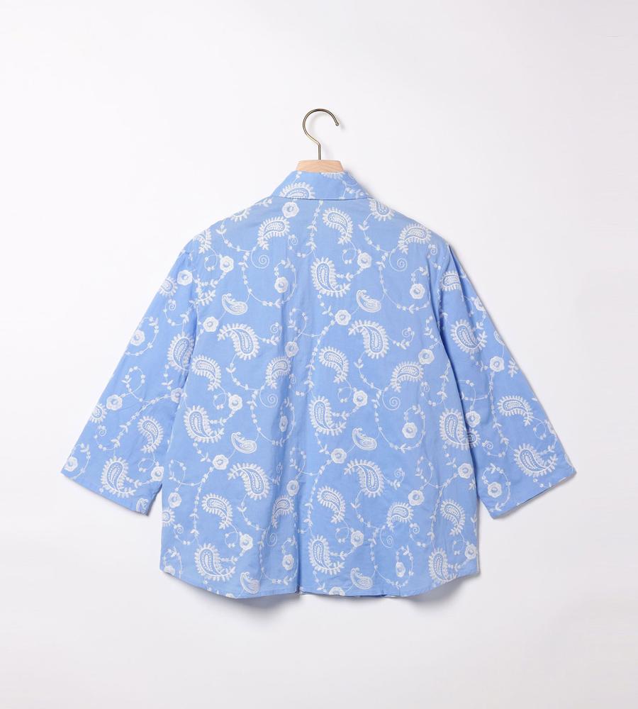 ペイズリー柄を丁寧な刺繍で表現した5分袖ブラウス。爽やかで涼しげなコットン生地を使用しています。柄特有のエレガントでエスニックな雰囲気も魅力。シルエットはややコンパクトな作りで、すっきりと着こなしていただけます。トップス感覚でスタイリングするのはもちろん、軽い羽織りとして使うのもおすすめです。