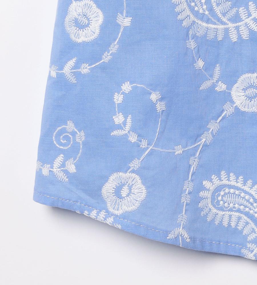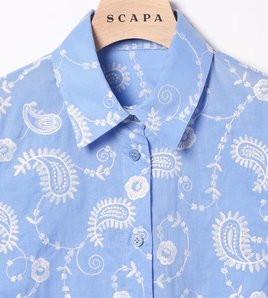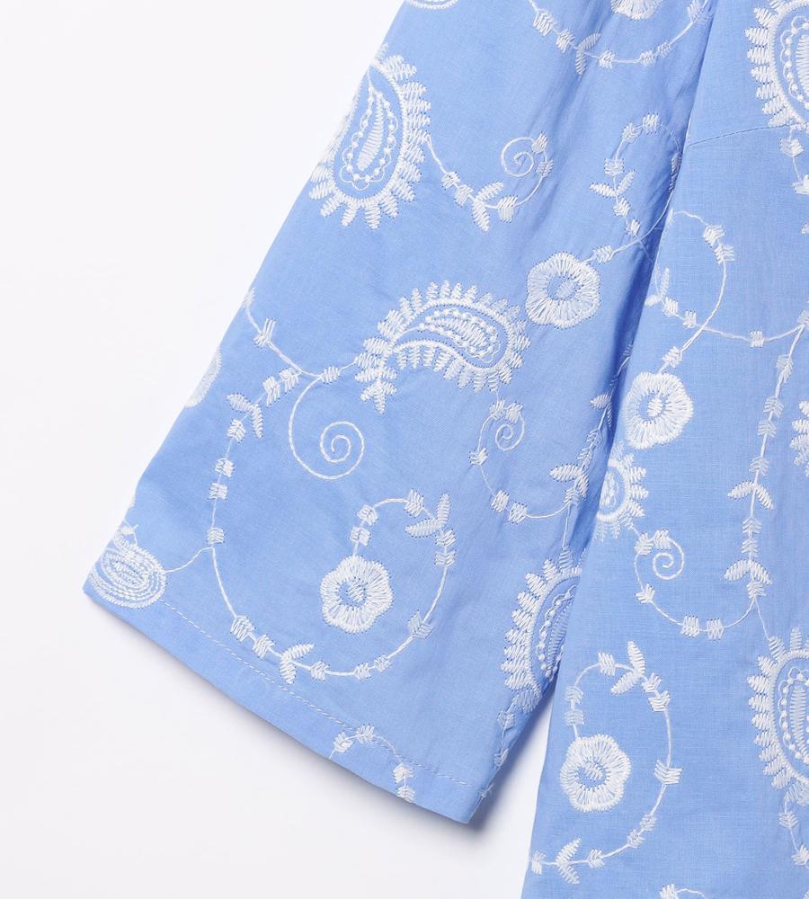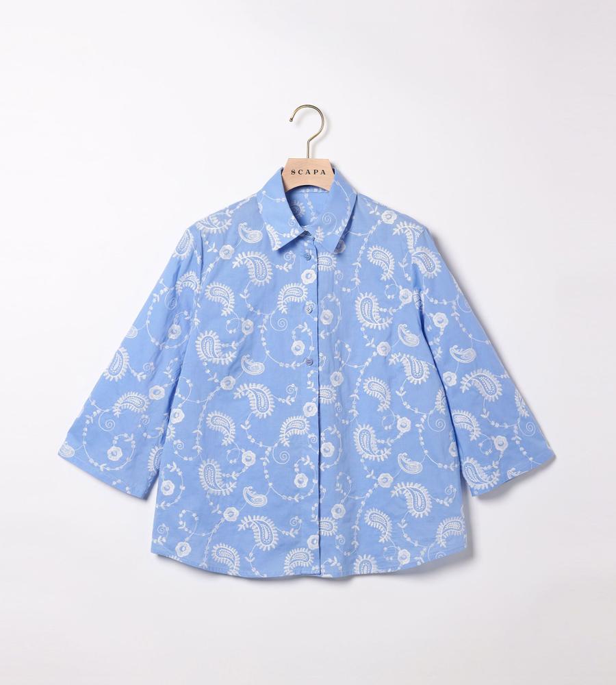ペイズリー柄を丁寧な刺繍で表現した5分袖ブラウス。爽やかで涼しげなコットン生地を使用しています。柄特有のエレガントでエスニックな雰囲気も魅力。シルエットはややコンパクトな作りで、すっきりと着こなしていただけます。トップス感覚でスタイリングするのはもちろん、軽い羽織りとして使うのもおすすめです。