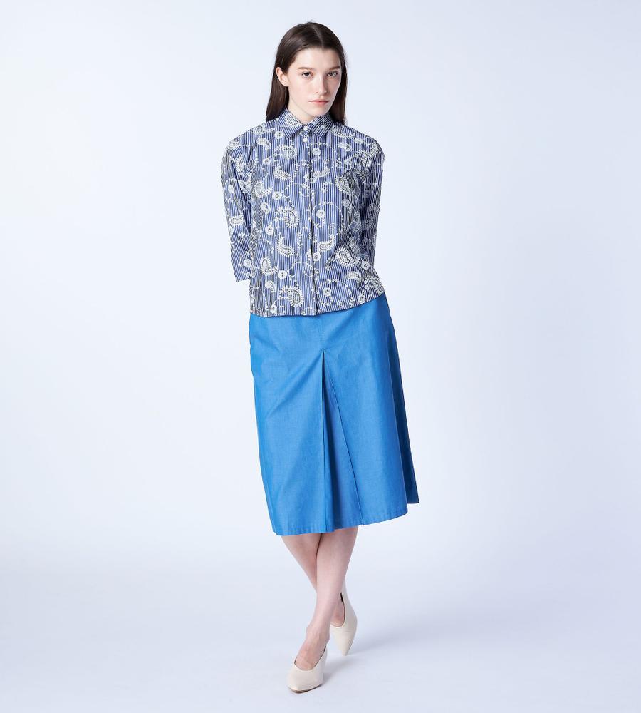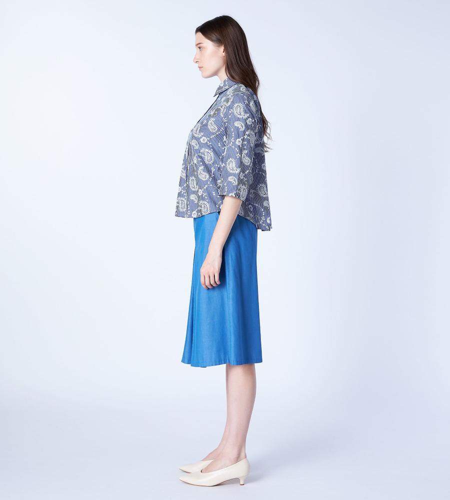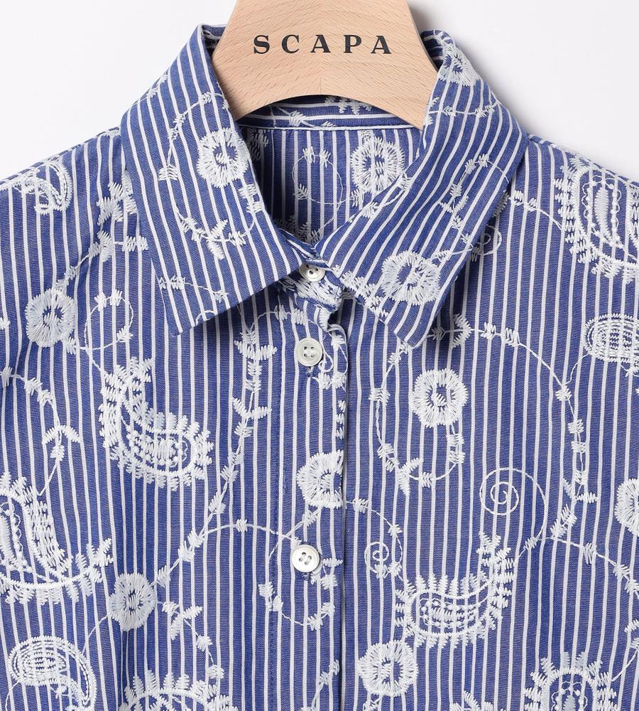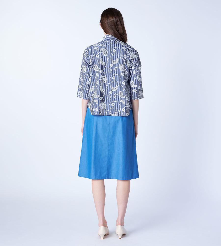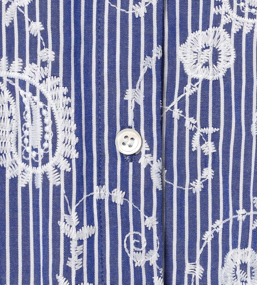 ストライプ柄のコットン生地に丁寧なペイズリー刺繍をあしらった5分袖ブラウス。爽やかでエレガント、そしてエスニックな雰囲気が漂う一着です。ややコンパクトな作りですっきりと着用でき、無地のボトムを合わせるだけで華やかな装いが完成します。ワンピースなどの軽い羽織りとして使うのもおすすめです。