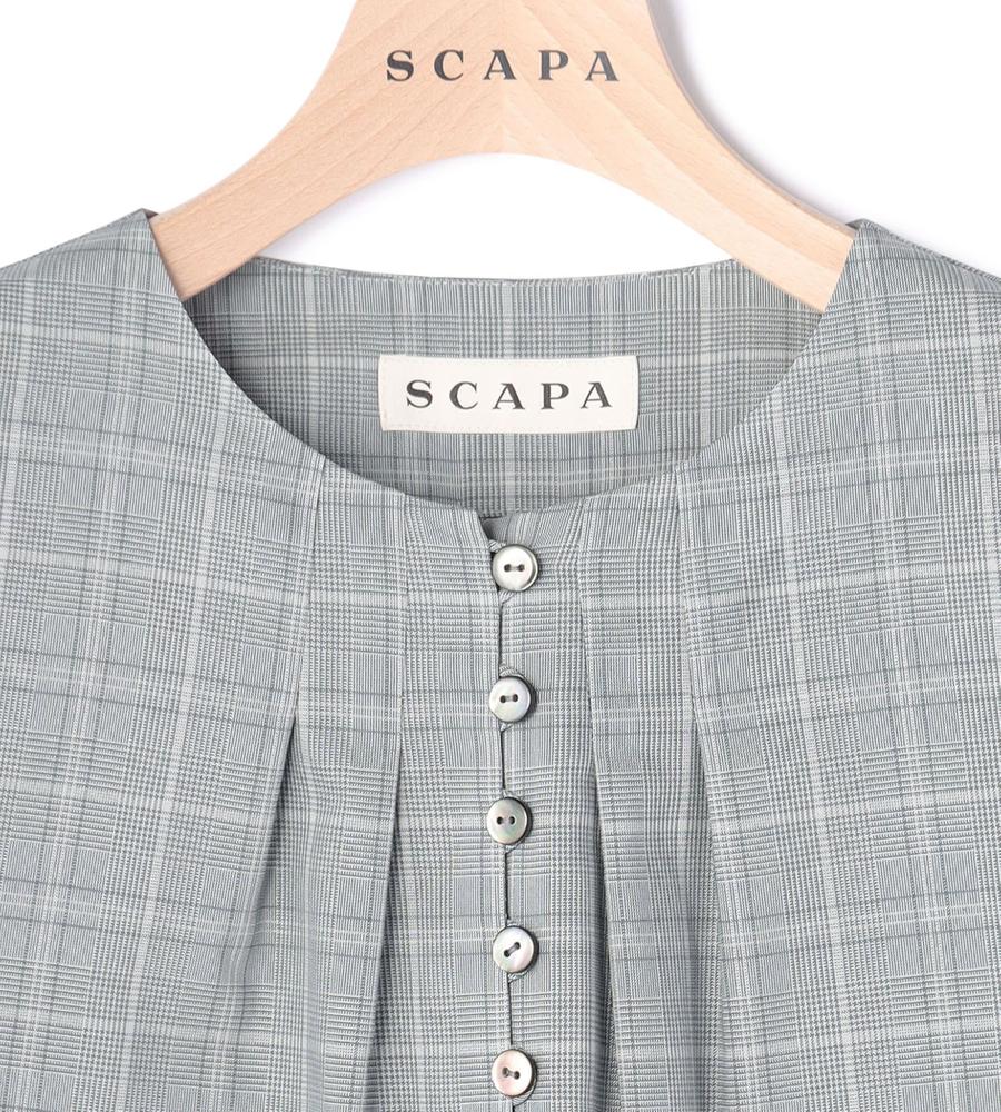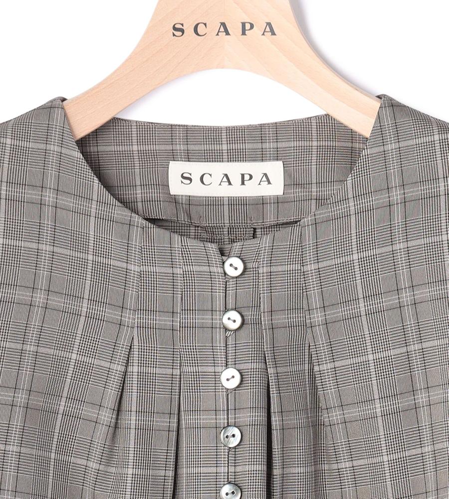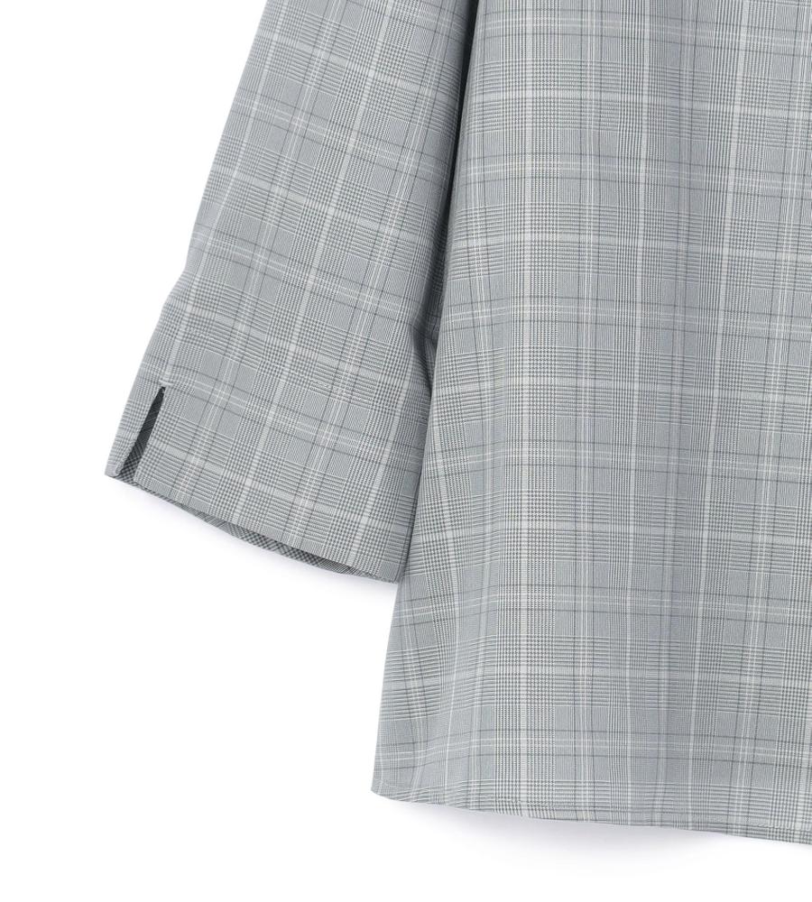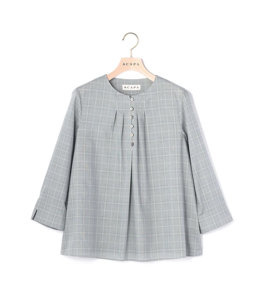 秋のおしゃれ心を盛り上げるグレンチェック柄のブラウス。気負わずに着こなせるプルオーバーデザインですが、胸元のボタン使いが適度なきちんと感を加えています。すっきり見える7分袖も、愛用したくなるポイント。