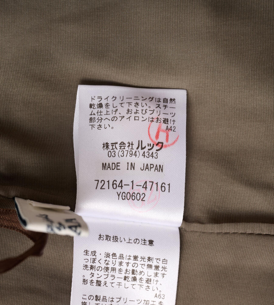 ※中古品のため、家庭用品品質表示法に基づく組成表示や取扱い表示が旧表示の製品もありますがご了承ください