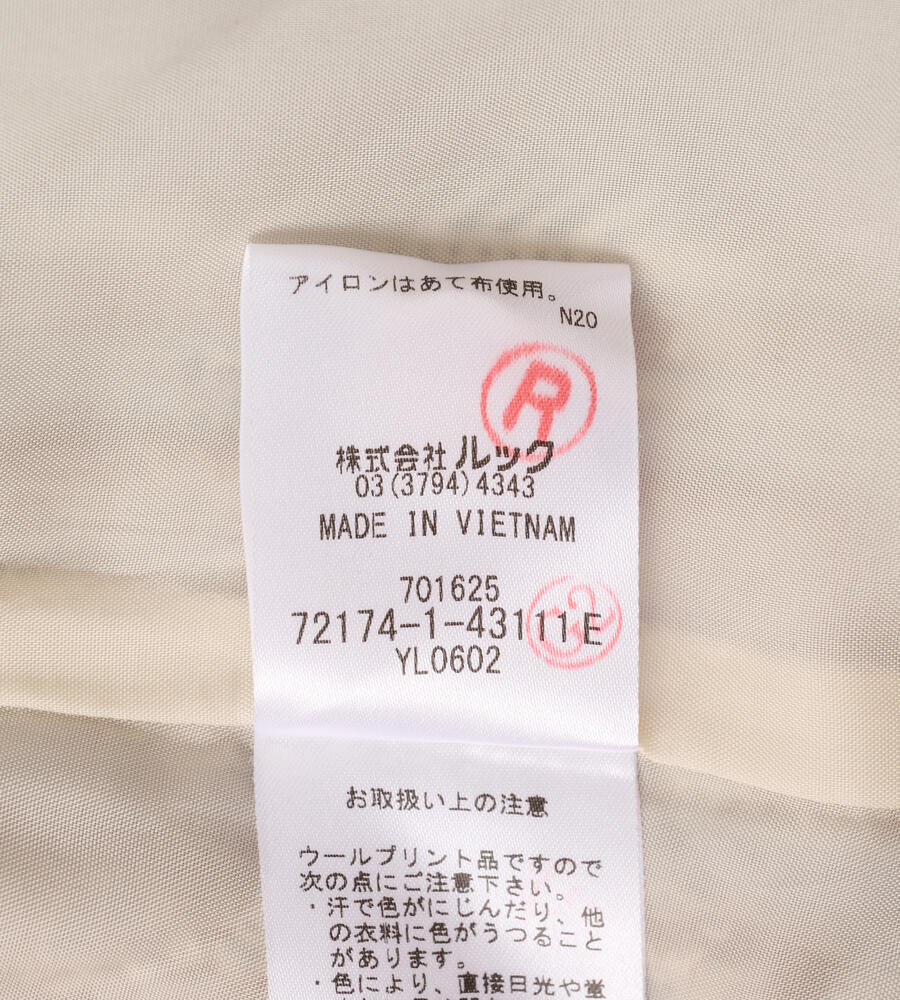 ※中古品のため、家庭用品品質表示法に基づく組成表示や取扱い表示が旧表示の製品もありますがご了承ください