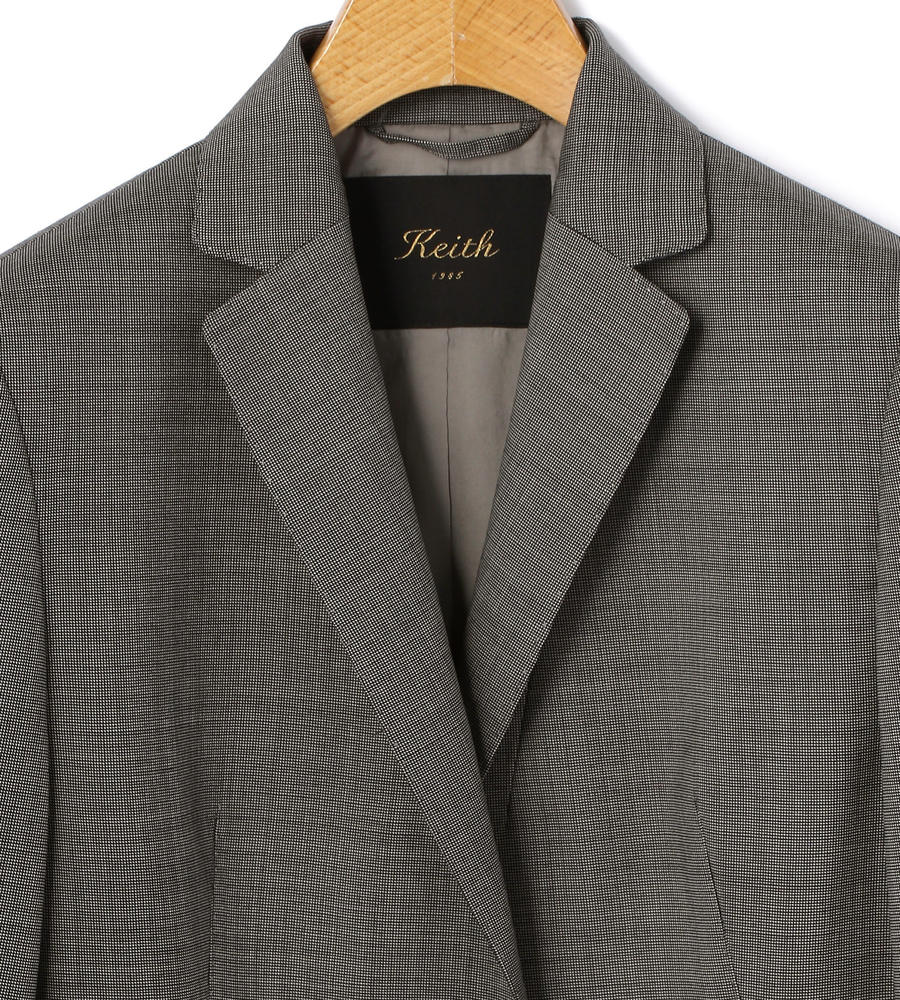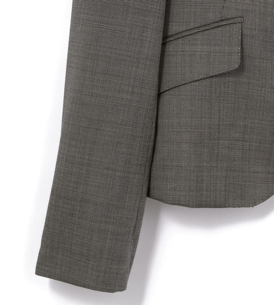 シック&スマートなルックスながら適度な保温性のあるウールのジャケット。細身の衿やワンボタンが、洗練された表情を後押しするポイントに。ほど良くコンパクトなシルエットで、ボタンを開けて着流しても着こなしがきまるのがうれしい。オンスタイルの仕上げに、あると重宝する一枚です。
