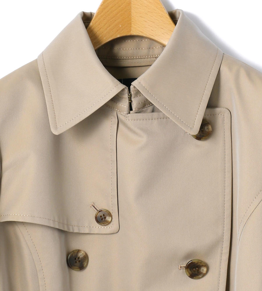 マニッシュな雰囲気の着こなしがお楽しみいただける、交織ギャバのダブルブレステッドトレンチコート。端正なフォルムの襟が顔周りをスマートに引き立てます。ハイウエストで共地のベルトをマークすれば、スタイルアップ効果も期待できそうです。ライナーは取り外しできるのでロングシーズンお使いいただけます。