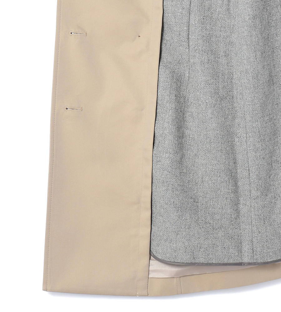 | 素材 : | コート:(表地 本体)綿65% ポリエステル35% (バックル)牛革 (裏地)ポリエステル ライナー:(本体)毛65% ポリエステル25% ナイロン5% アクリル3% レーヨン2% (パイピング)ポリエステル100% |