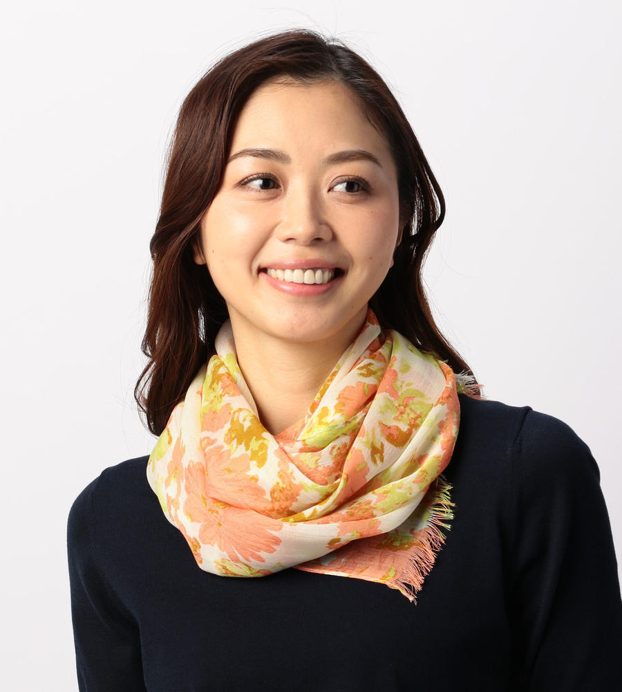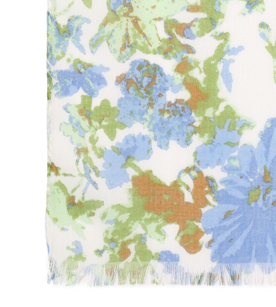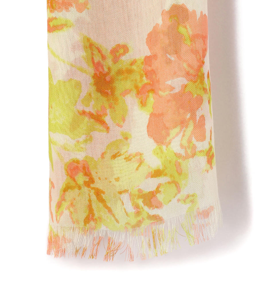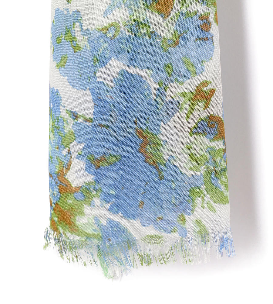 水彩で描いたような美しい色合いのアーティスティックなフラワー柄を表現したストール。レーヨン素材を使用し、ふわりとした軽やかな風合いに仕上げました。エッジ部分は断ち切りフリンジでナチュラルな表情を作り出しています。大判サイズで巻いたり垂らしたりとアレンジも自在に行えます。