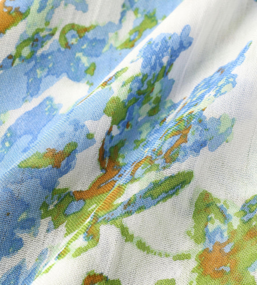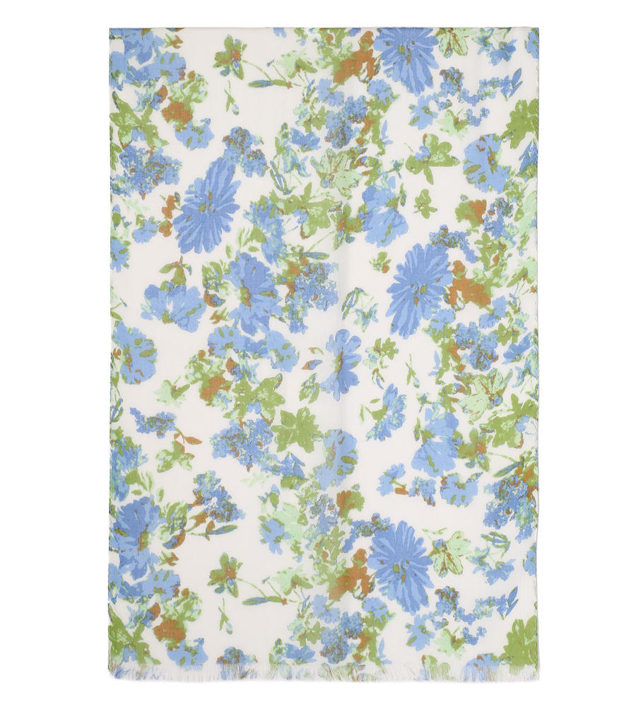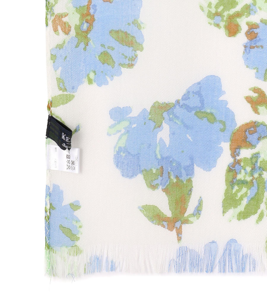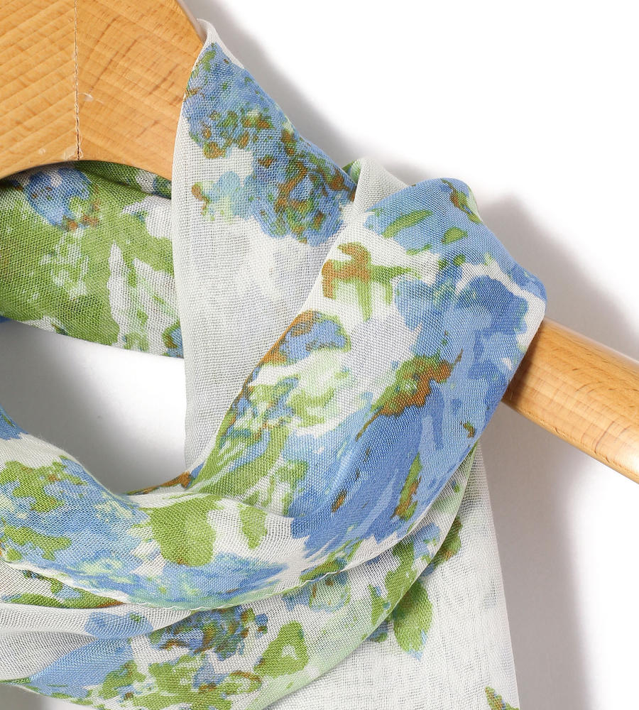 水彩で描いたような美しい色合いのアーティスティックなフラワー柄を表現したストール。レーヨン素材を使用し、ふわりとした軽やかな風合いに仕上げました。エッジ部分は断ち切りフリンジでナチュラルな表情を作り出しています。大判サイズで巻いたり垂らしたりとアレンジも自在に行えます。