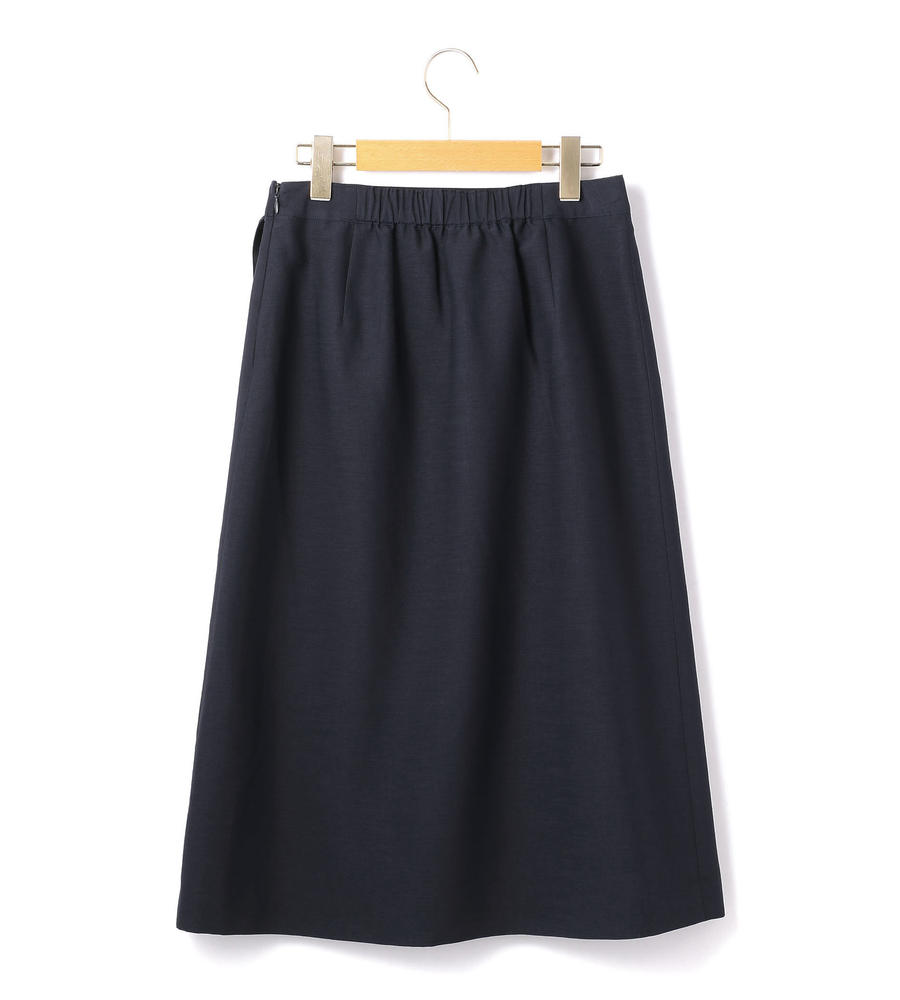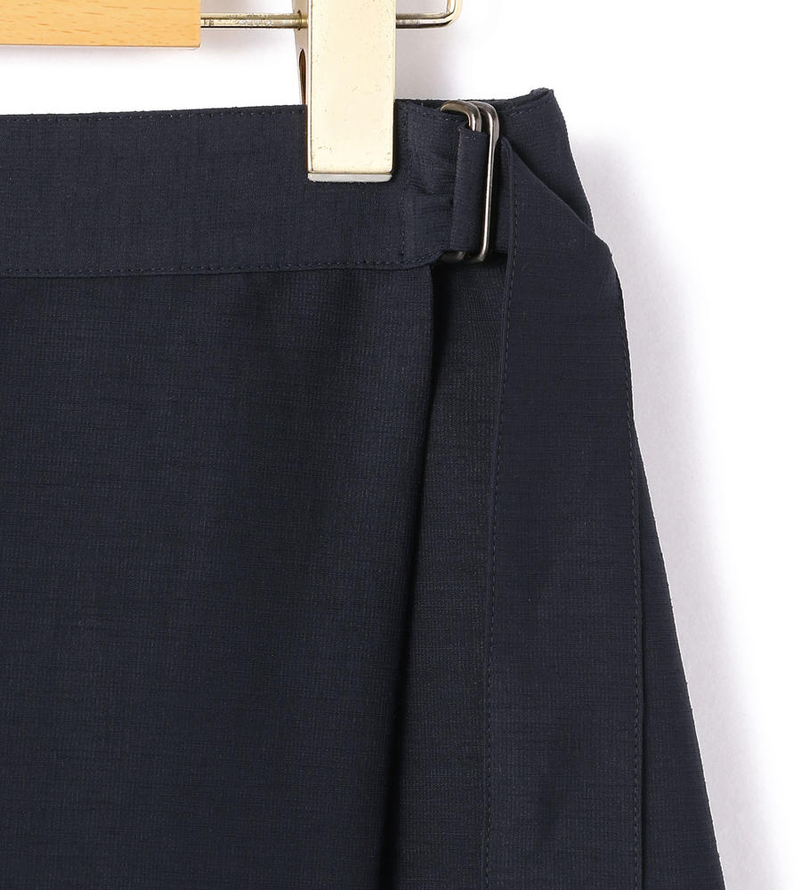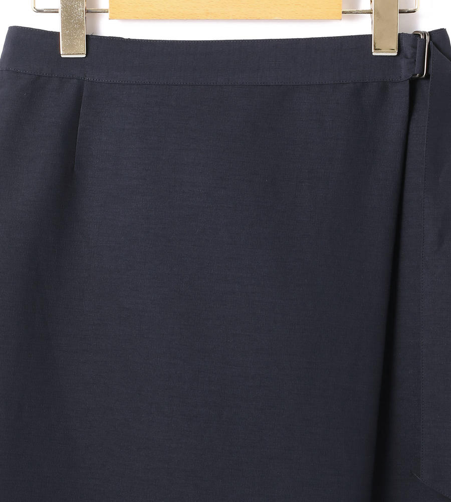 ラップ風のアシンメトリーなデザインがシンプルな中にも存在感を与えるミディ丈スカートです。ウエストベルトがトップスインスタイルした際のワンポイントに。バックウエストは履き心地の良いゴム仕様。コンパクトなトップスともバランス良く着こなしていただけます。