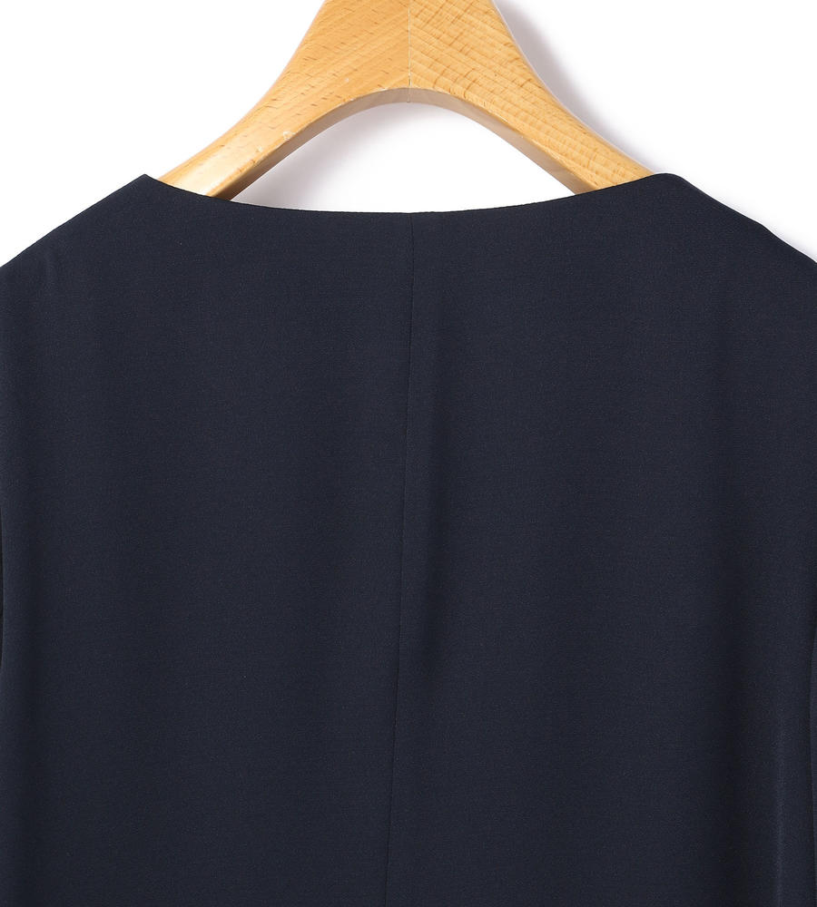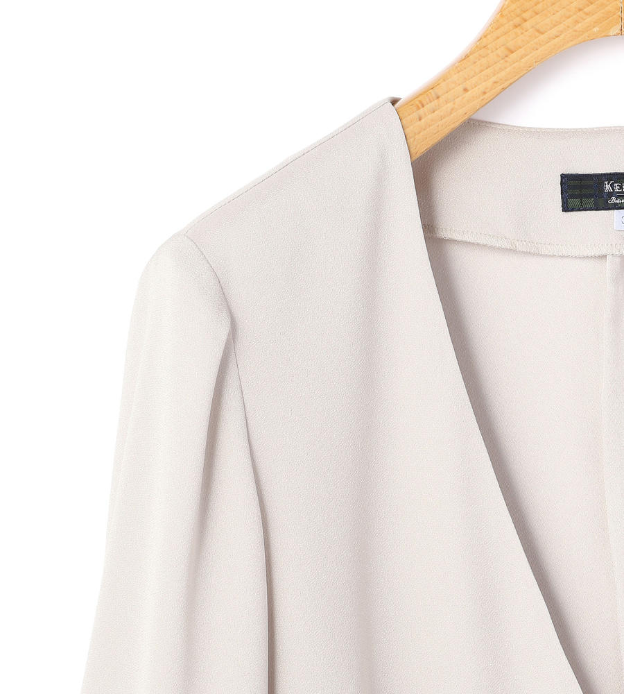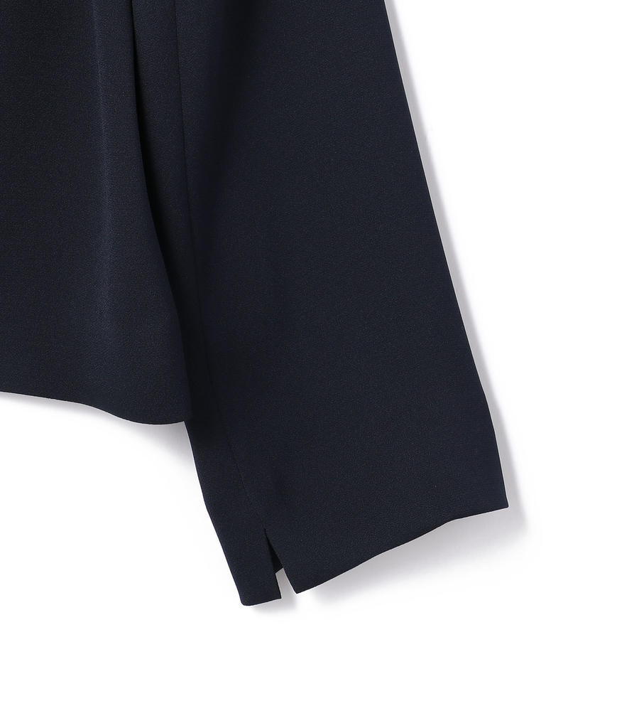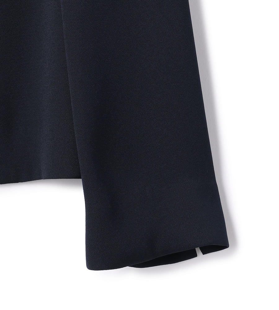 すっきりとした印象に着こなせるノーカラー×Vネックのジャケット。とろみのあるソフトな風合いが際立つよう、裏地を省いて仕立てています。着心地が軽く、普段のコーディネートにも気軽に取り入れられるアイテムです。ほどよい着丈はパンツにもスカートにも、ワンピースにも似合います。