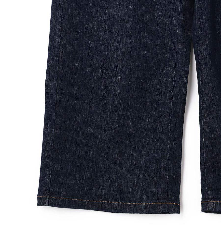 今季らしい抜け感漂うスタイルに欠かせないワイドシルエットのパンツはEDWINとのコラボレーションアイテム。キラリと光るリベットがエレガントなエッセンスを添えています。バックポケットの“W”ステッチ、ブランドロゴ入りのレザーパッチがワンポイントに。