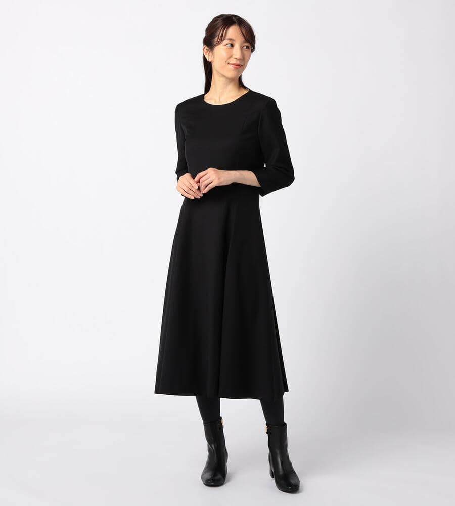 上質なウールサージ生地で仕立てた、シンプルなデザインのワンピースです。合わせるアクセサリー次第でフォーマルな場面でもお召しいただける、品格のある表情が魅力の1着。やや高めのウエスト位置で切り替えを施し、スタイル良く見せてくれます。フレアシルエットにより、フェミニンな着こなしを叶えるドレス。