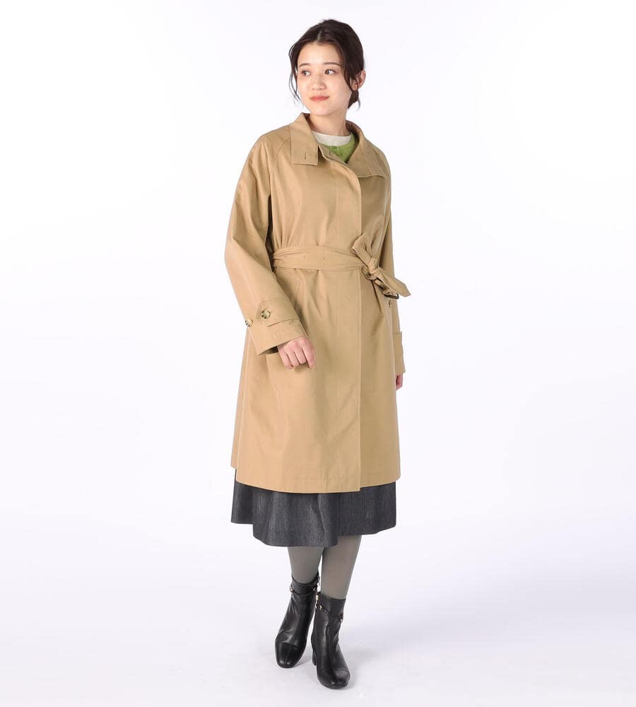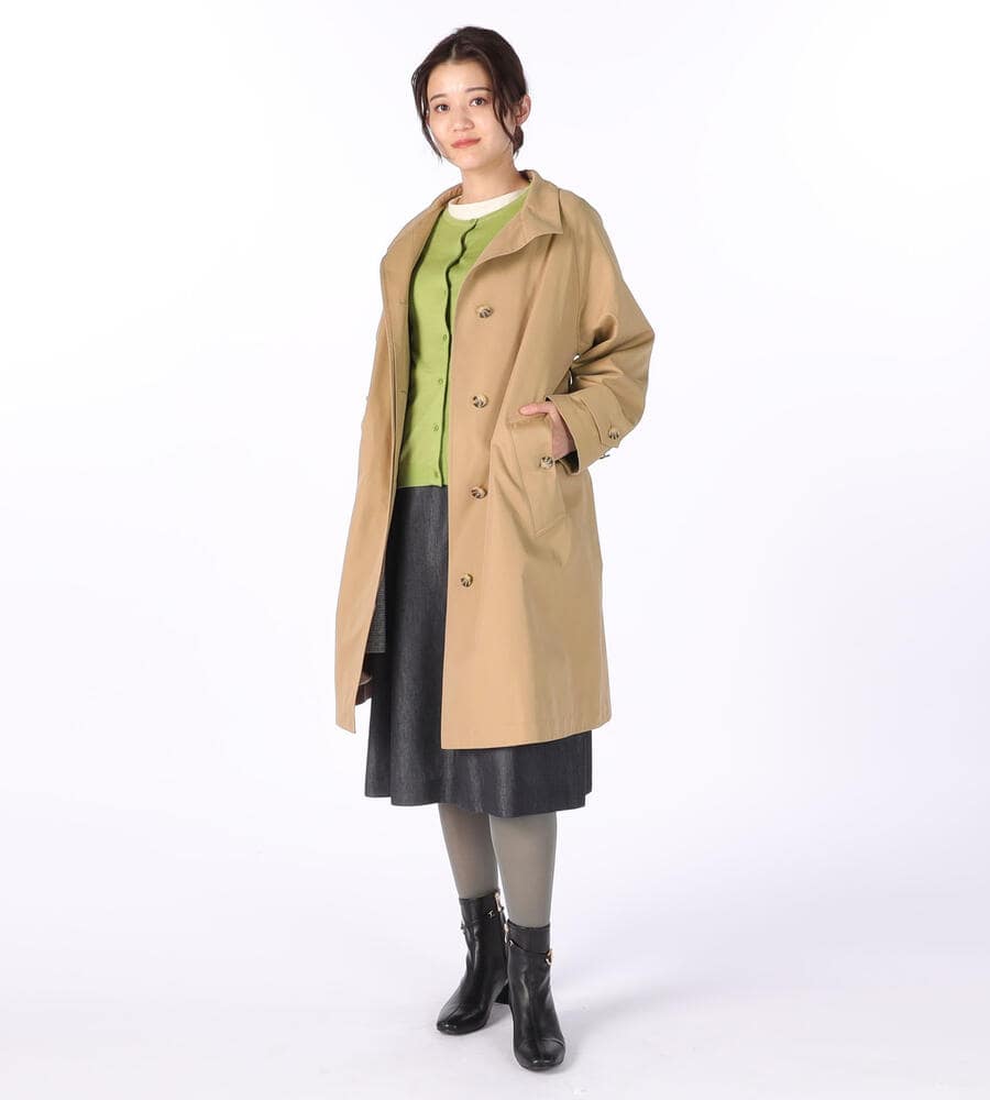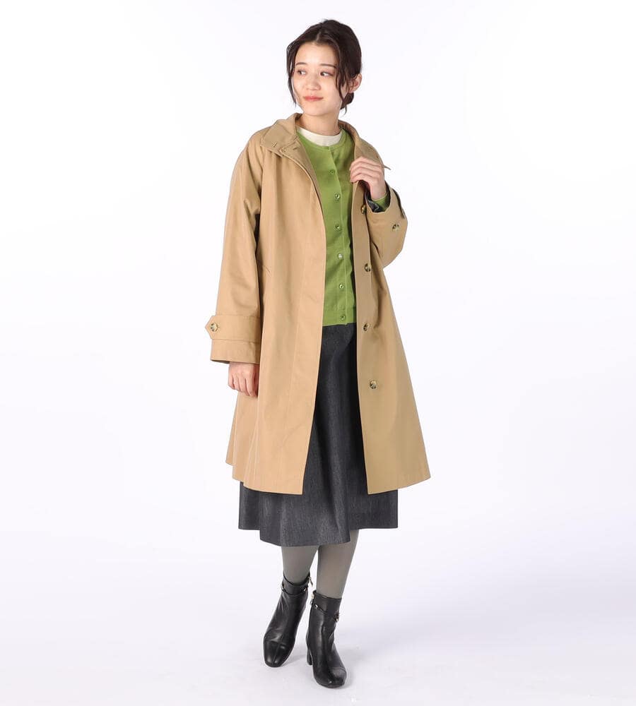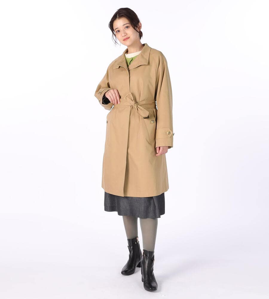 裾に向かって広がるAラインシルエットのベルト付きギャバジンコート。フロントはボタンの見えない比翼仕立て、サイドにポケットを配置。ボタンで取り外しが可能になっているライナーにはハウンドトゥース柄を採用し、クラシカルなエッセンスを取り入れています。