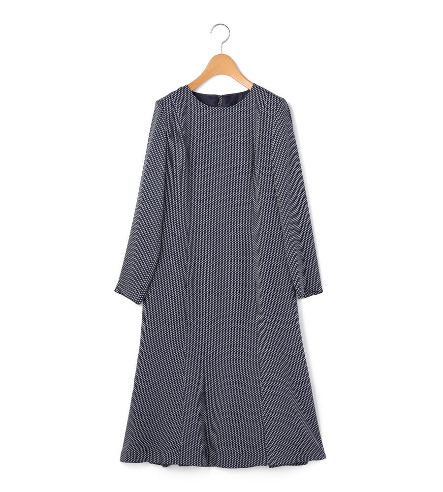 グラフィカルなスクエアパターンのプリントがスタイリッシュなデザインの長袖ワンピース。裾に向かって広がるフレアなスカートのラインがフェミニンなムード。ダーツの入った立体感のある美しいシルエットもエレガントなポイント。おしゃれなお出かけコーディネートが一枚で完成するアイテムです。