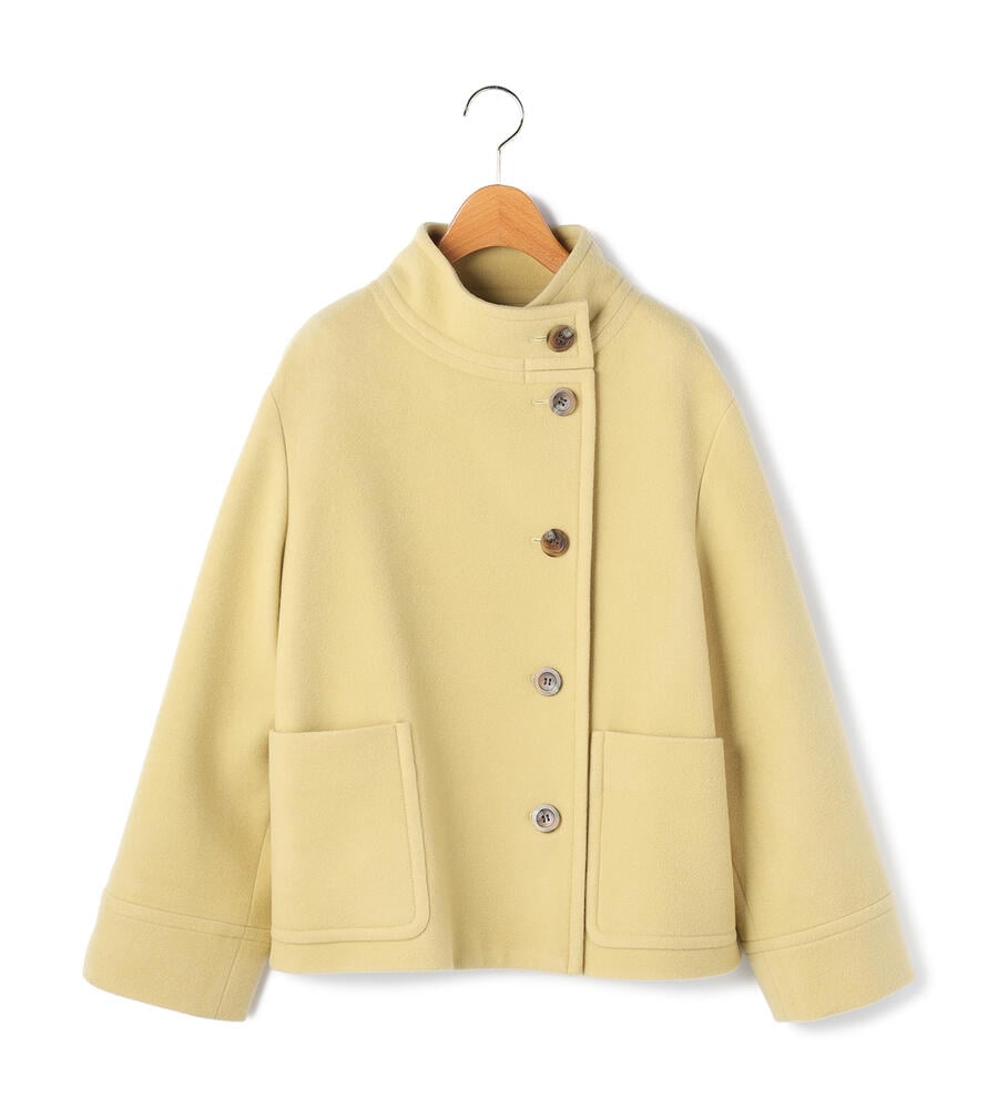 保温性に優れたウールメルトン素材で仕立てたあたたかなムードのコート。スタンドカラーとフロントのアシンメトリーな左寄りのボタン配置がスタイリッシュなデザインポイント。ショート丈で上半身がコンパクトにまとまり、バランスよく着こなせます。毎日のコーディネートにマッチするシンプルさも魅力の一つです。