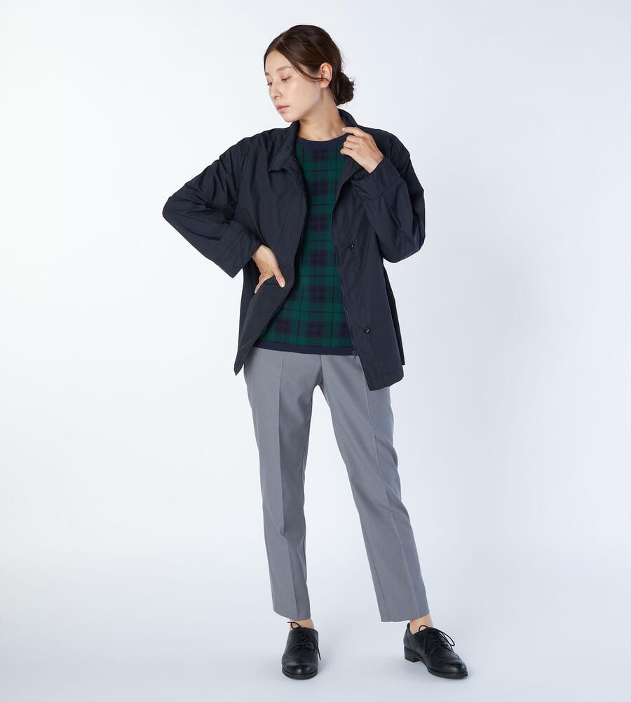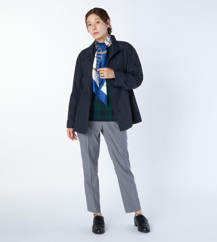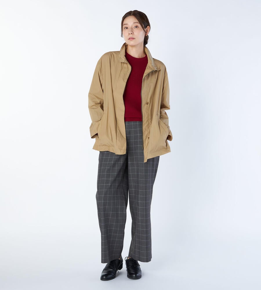 裏地なしのナイロンタフタ生地で、季節の変わり目のライトアウターとして重宝するジャケットです。洗練されたスタンドカラーや比翼仕立てなどがデザインのポイント。ウエスト部分のドロストでシルエットのアレンジも楽しめます。カジュアルながらも気品があり、大人の女性に最適なアイテムです。