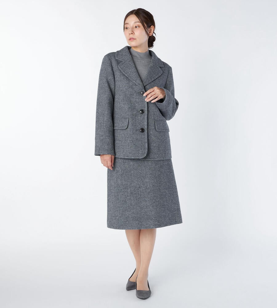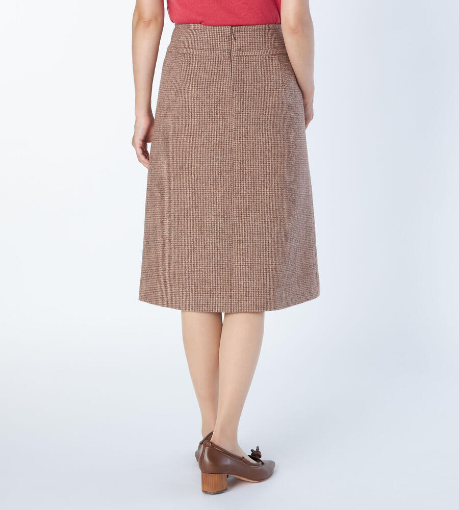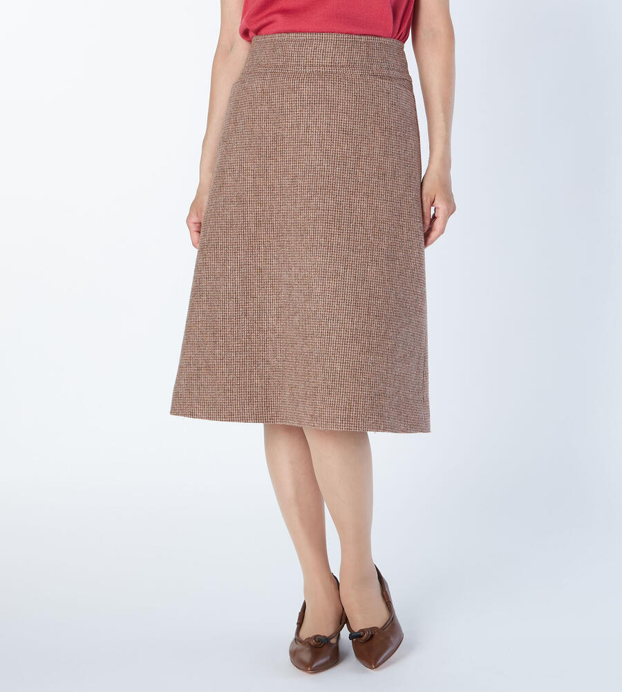 ブリティッシュウールを使用した、正統派の風格溢れるツイード素材のスカートです。華美な印象を控えめにした台形型のシルエットで、大人らしい落ち着きを備えた1点です。ウエストまわりがすっきりとしているため、トップスの裾をインさせるとバランスの取れた着こなしに。同素材のジャケットを合わせたセットアップスタイルもお楽しみいただけます。