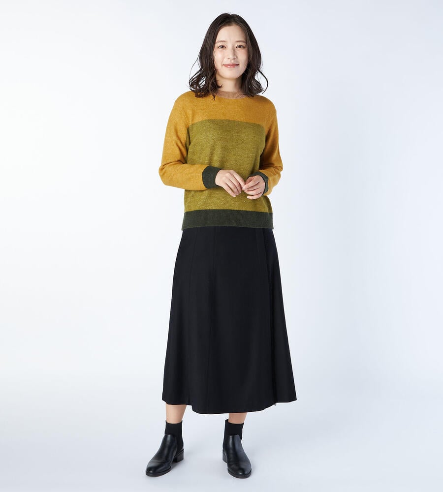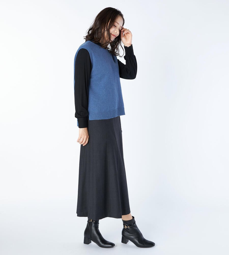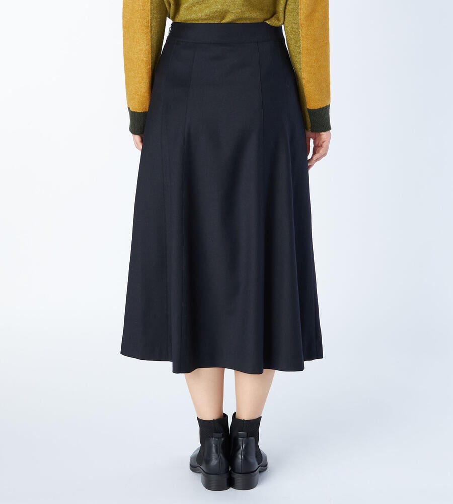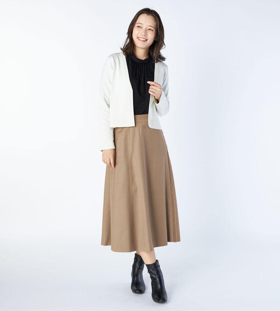 タイムレスかつエレガントな装いを完成させる、シックなスカート。合わせるトップスを選ぶことなく、長くご愛用いただけます。フリンジ使いとラップスカート風のディテールが、さりげなく装いにアクセントをプラスします。ウールを混紡した温かみのある風合いで、これからの秋冬シーズンに最適な1着です。