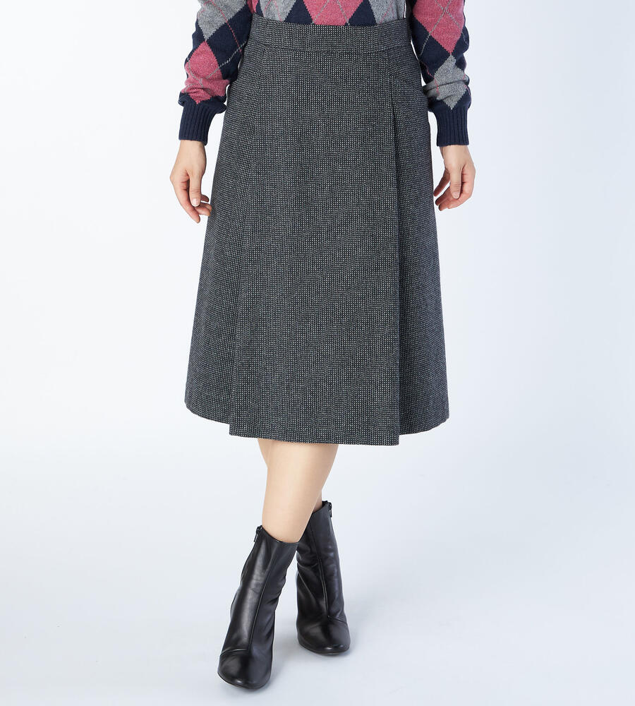 エレガントな秋冬スタイルを叶えてくれるヘリンボーン柄のスカート。ウエストにタックプリーツをほどこし、裾に向かって緩やかに広がるAラインシルエットを演出。サイドのポケットデザインがアクセントになっています。ブーツやシューズとバランス良く着こなせるミドル丈もポイントです。
