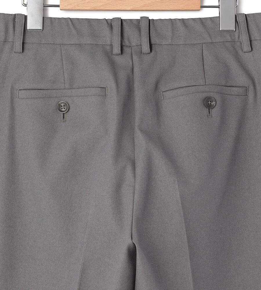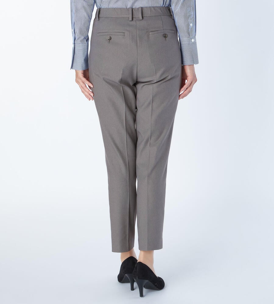 きれいめな風合いのストレッチツイル生地で仕立てたテーパードパンツ。センタープレスと裾に向かって細くなるシルエットが、脚のラインをシャープに引き立てます。きちんとした印象ながら、伸縮性とゴム入りのバックウエストにより穿き心地も快適。日常から通勤、お出かけまで幅広いシーンにおすすめの一本です。