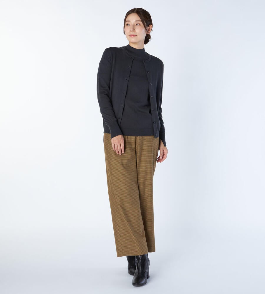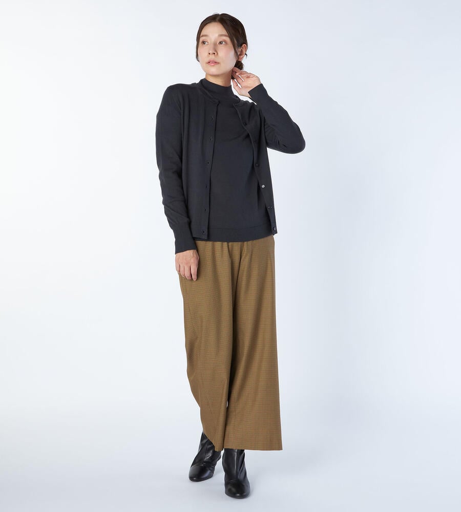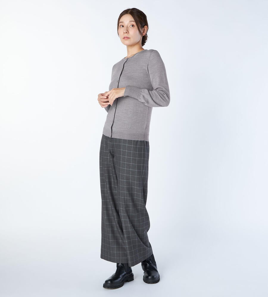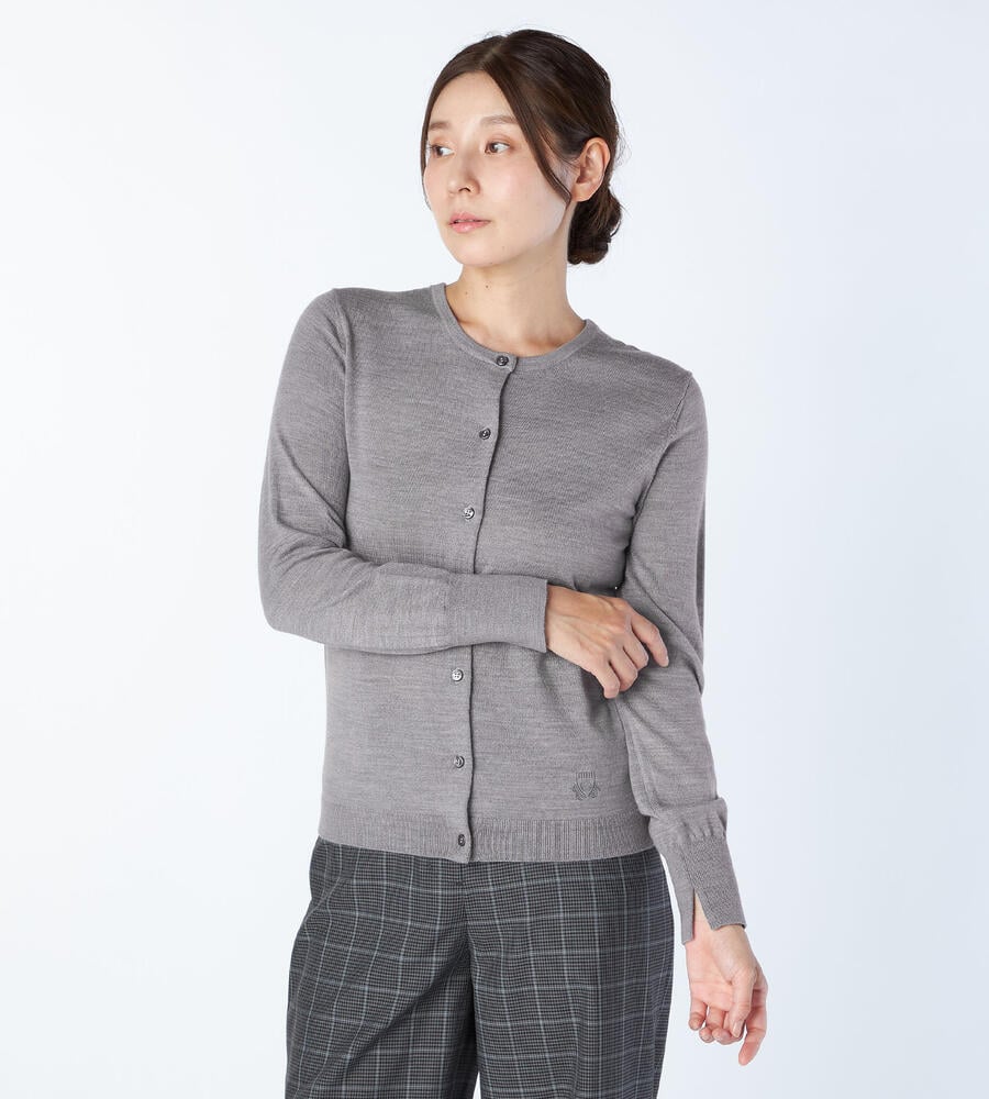 ウールにアクリルを織り交ぜた、しっとりとした落ち感が美しいハイゲージニットのカーディガン。秋冬の着こなしにしっくりと馴染むカラーバリエーションで揃っています。ラウンドネックを採用し、ノーカラージャケットのような気品を備えた仕上がり。袖のリブが長く、手元を綺麗に映し出すのも特徴です。