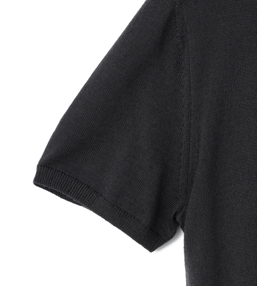 ウールにアクリルを織り交ぜた、しっとりとした落ち感が美しいハイゲージニットのトップスです。シーズンが切り替わる時季にも最適な半袖を採用しています。すっきりと身体に沿うシルエットは、シーンを問わず活躍します。同素材のカーディガンを合わせて、アンサンブルとしてもお楽しみいただけます。