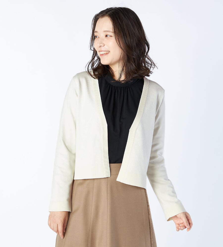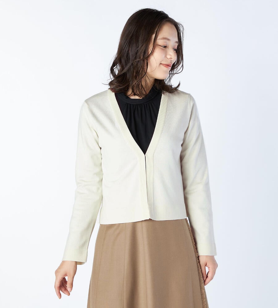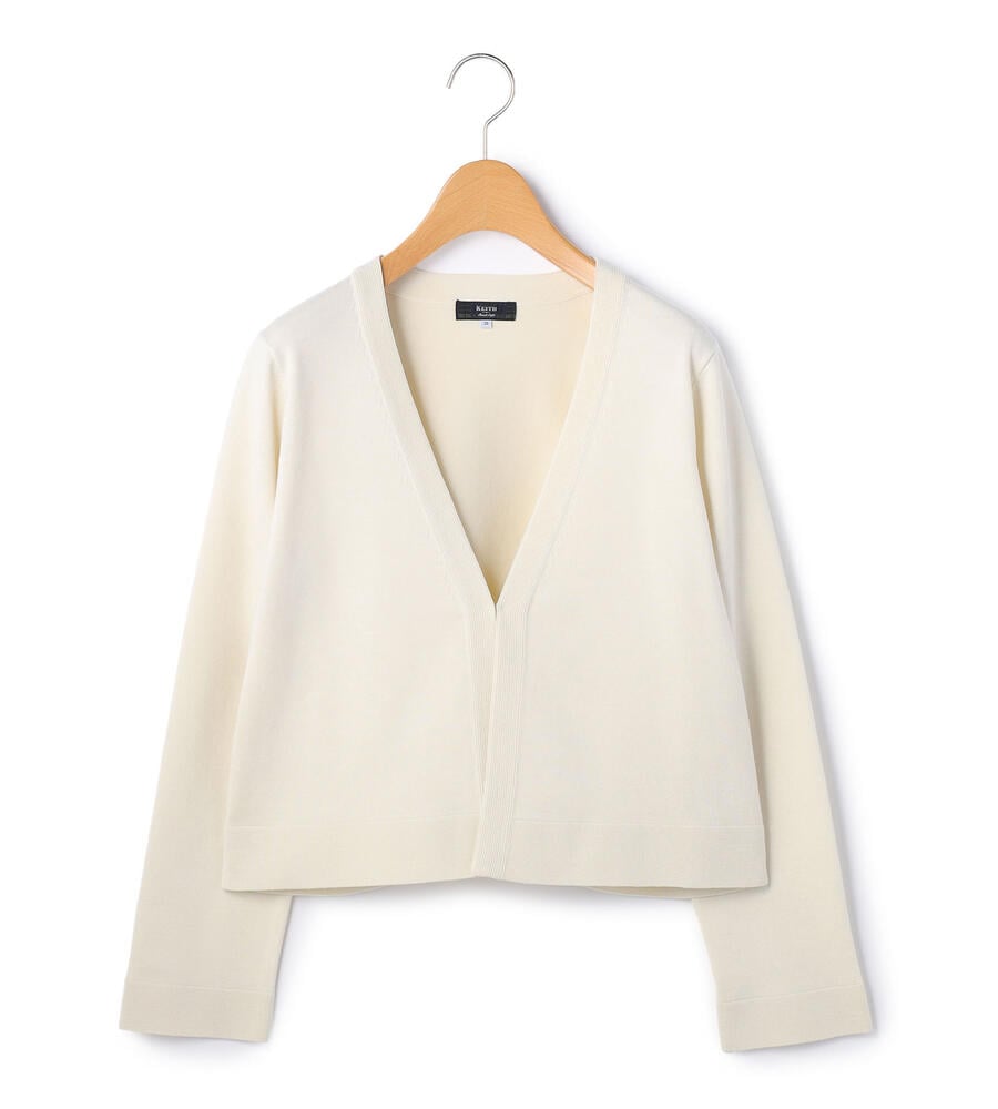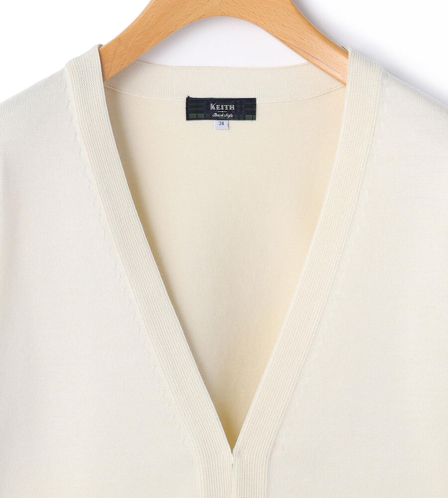 ワンホック留めのすっきりとしたフロントがポイントのニットカーディガン。インナーでのアレンジも広がる、スタンダードなVネックデザインです。着丈は少し短めでロングスカートやワンピースともバランス良くまとめられます。普段のカジュアルにもキレイ目コーディネートにも取り入れられる便利な1枚です。
