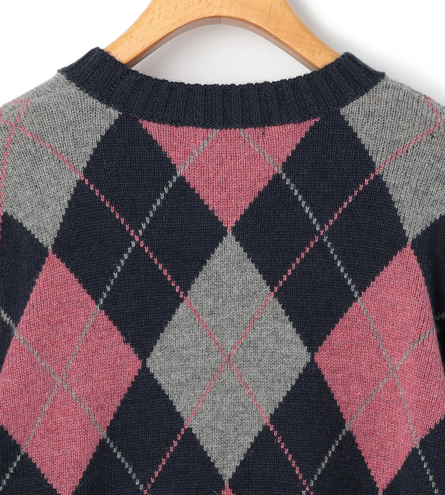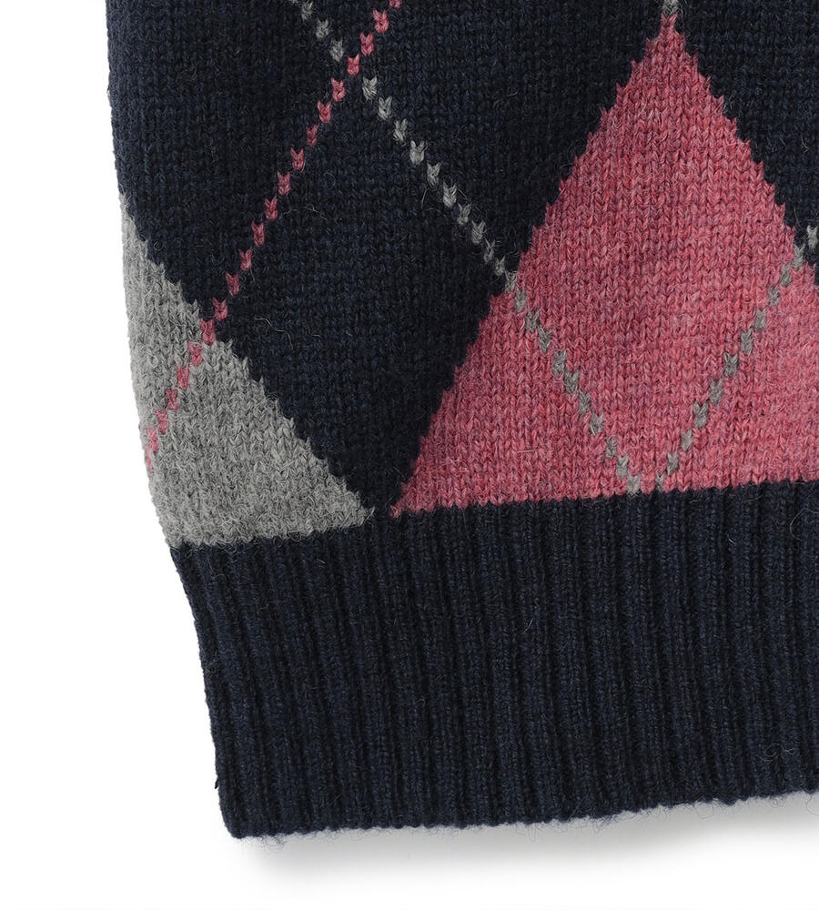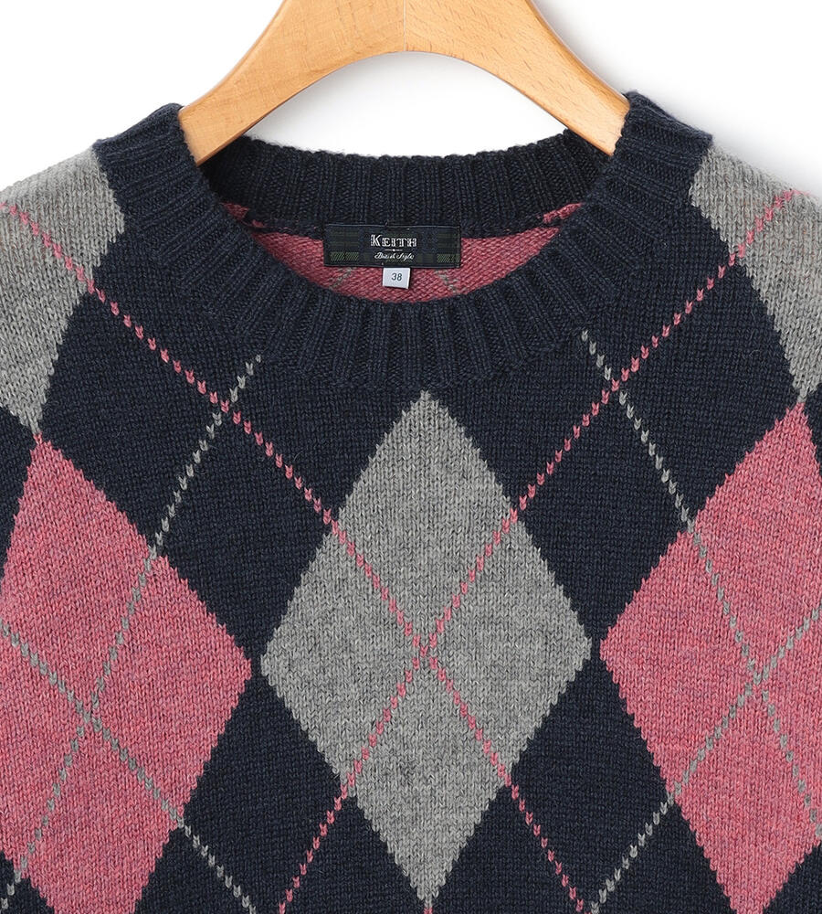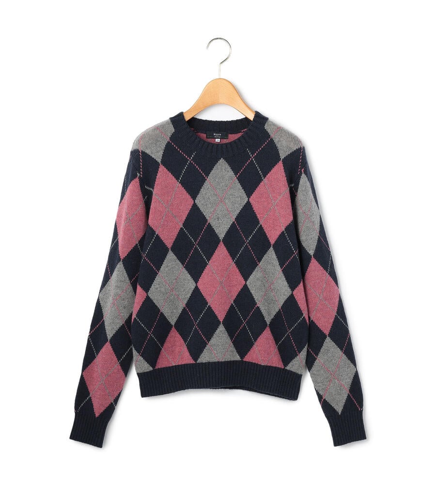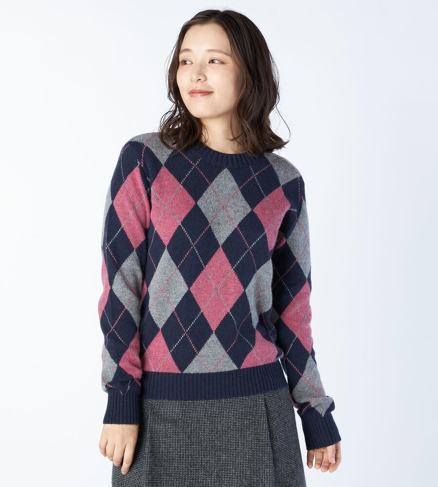 秋冬スタイルのアクセントに取り入れたい、トラディショナルなアーガイル柄のニットトップス。明るめのカラーを採用することで華やかな雰囲気に。首まわり、袖口と裾はリブ編みで切り替えたデザイン。暖かな風合いのウールブレンド素材が快適な着心地です。