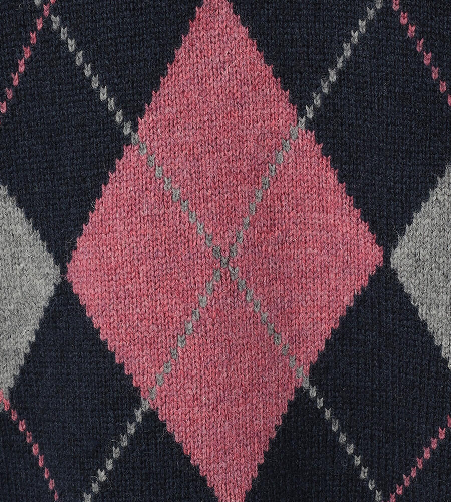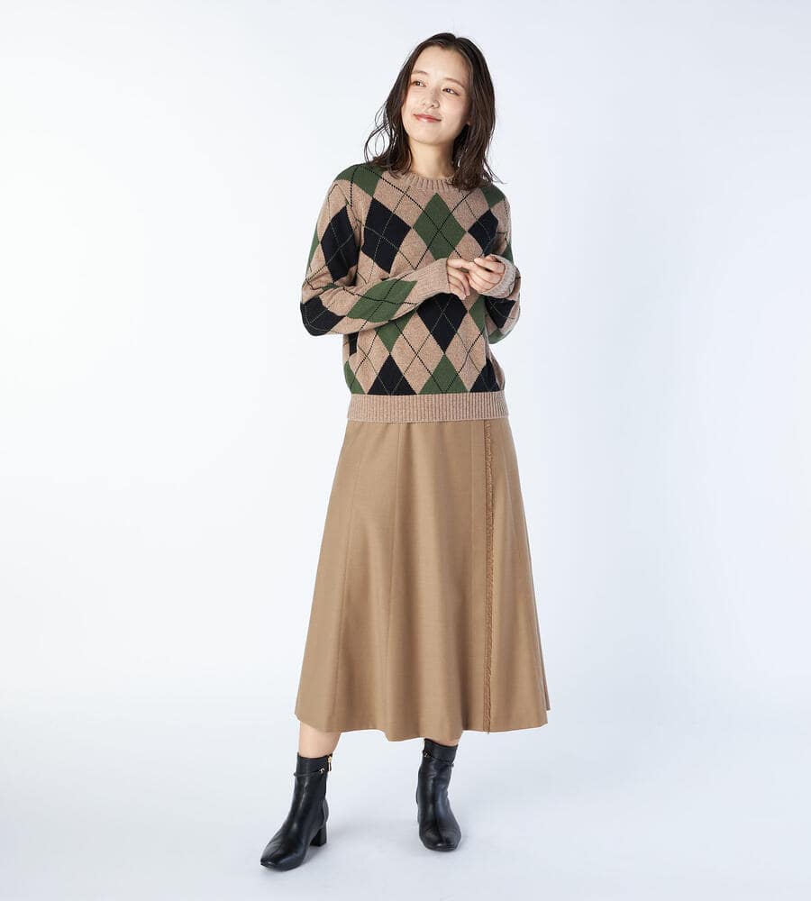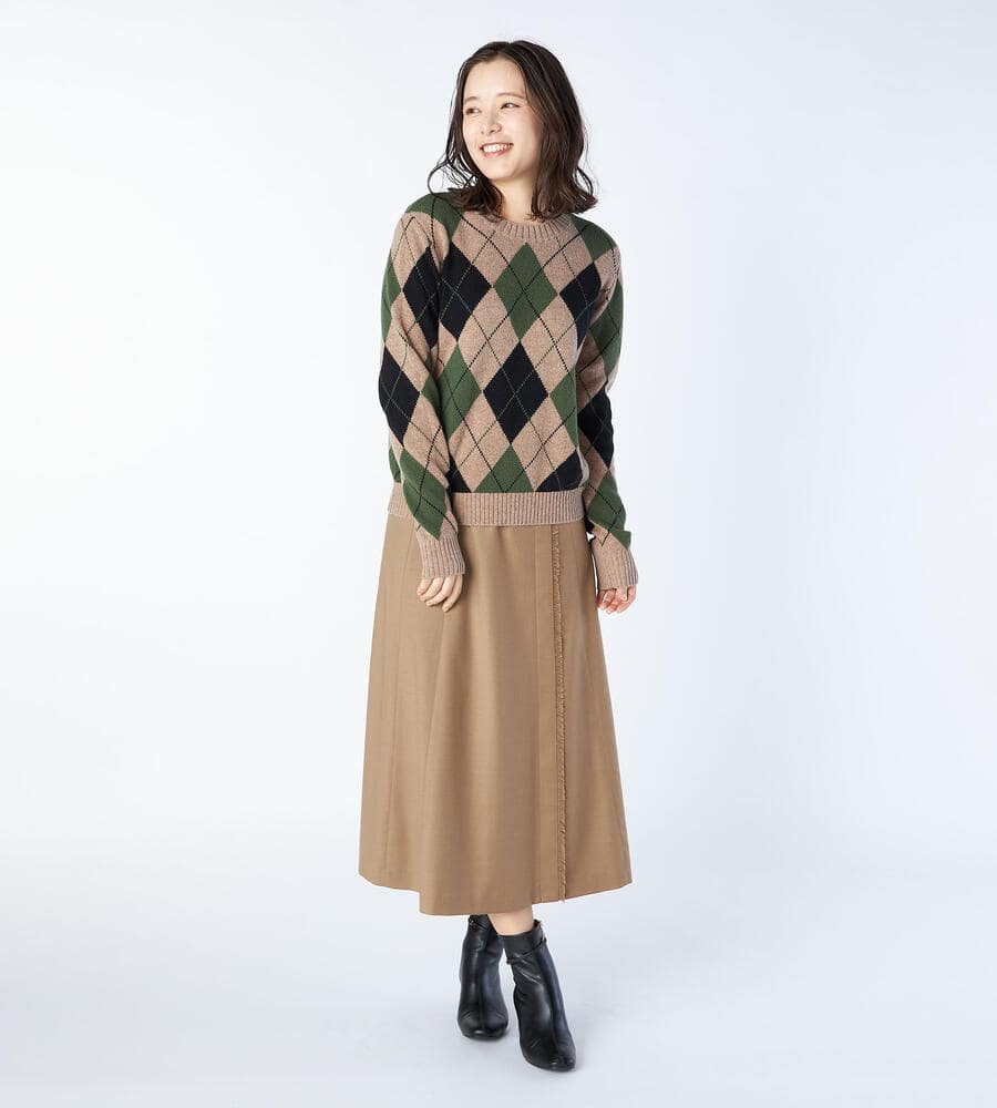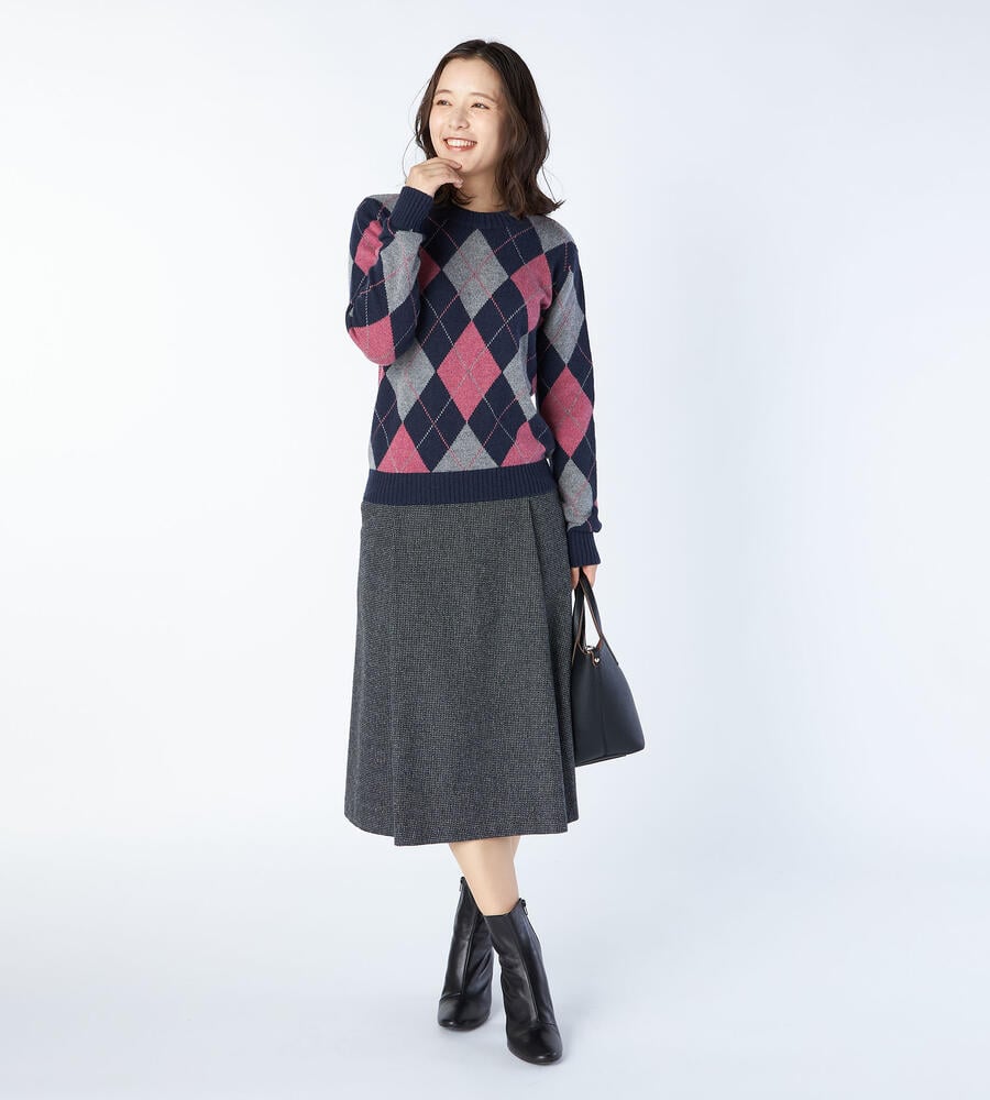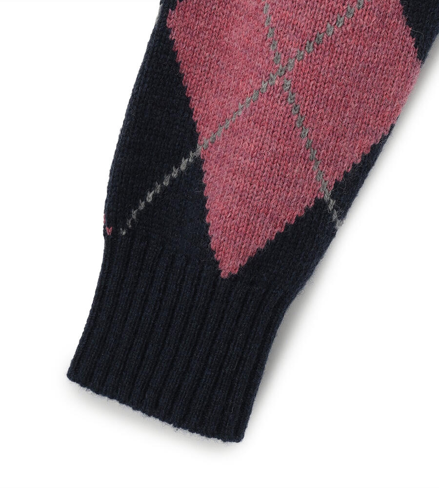 秋冬スタイルのアクセントに取り入れたい、トラディショナルなアーガイル柄のニットトップス。明るめのカラーを採用することで華やかな雰囲気に。首まわり、袖口と裾はリブ編みで切り替えたデザイン。暖かな風合いのウールブレンド素材が快適な着心地です。
