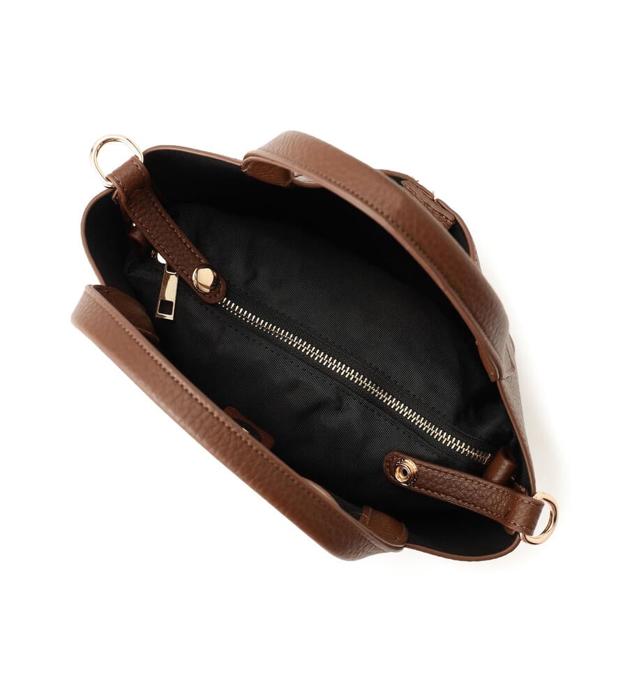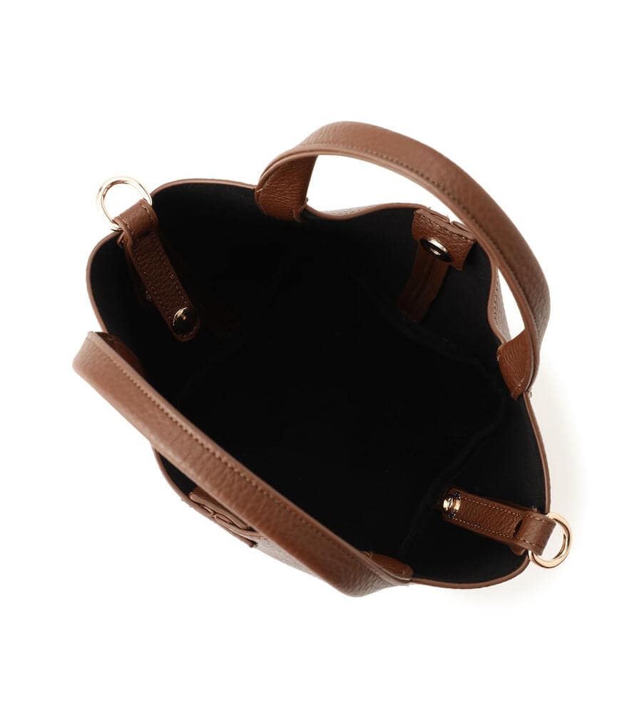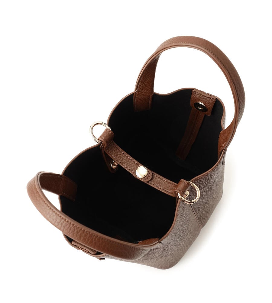 トレンド感のあるフォルムが印象的なハンドバッグ。そのまま使用するのはもちろん、サイドベルトの着脱によって別のフォルムもお楽しみいただけます。ショルダーストラップが付属し、手持ち・肩がけ・斜めがけが可能です。お荷物の整理に便利なバッグインポーチも魅力。アレンジ自在で汎用性抜群の一品です。