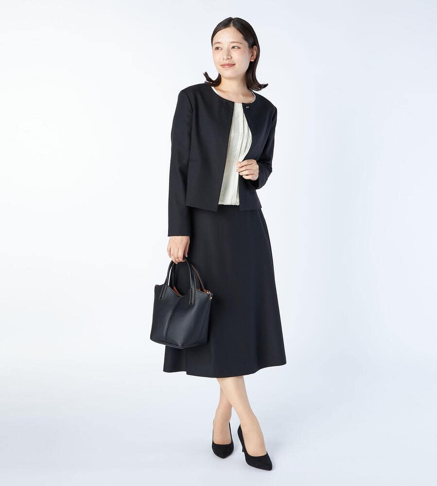 シンプルなデザインと美しいシルエットから大人の余裕を感じるフレアスカート。シューズと合わせた際のバランスを大切に、膝下をキレイに見せる着丈にこだわり仕上げました。サイドファスナー仕様、フロントウエストにはステッチ入り。同素材のジャケットとセットアップで着こなせるアイテムです。