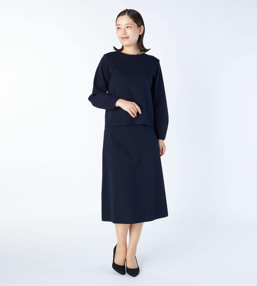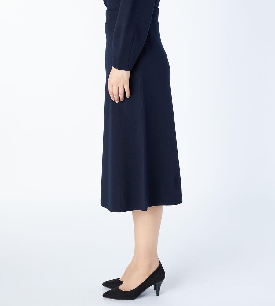 ひざ下のミディ丈でレディなムードのスカート。立体的なドレープが美しい台形型のシルエットが特徴。あらゆるスタイリングにマッチするシンプルかつエレガントな一枚。お出かけにはもちろん、オフィスシーンなどでも着まわせるきちんと感のあるデザイン。トップスを選ばず着こなせる汎用性抜群のアイテムです。