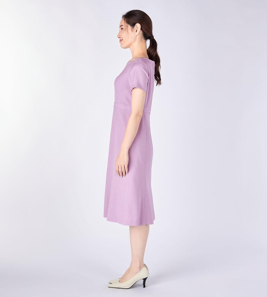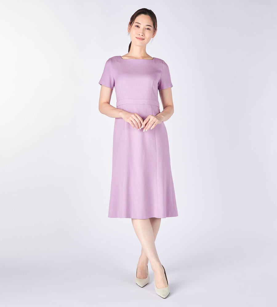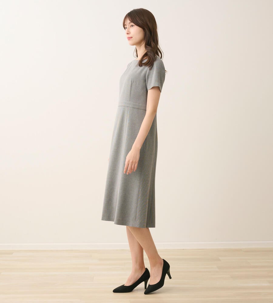 しなやかなオックス生地で仕立てた半袖ワンピース。ウエスト高めの位置に切り替えのアクセントで、スタイルよく着こなせます。バックジップ仕様でフロントはすっきりとしたデザイン。フレアで適度なドレープ感のあるスカートがフェミニンなポイント。おしゃれなお出かけコーディネートが完成するアイテムです。