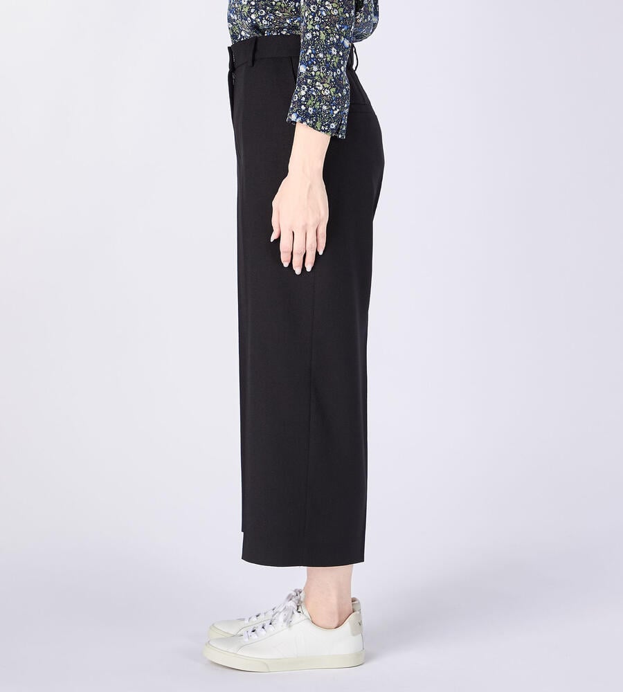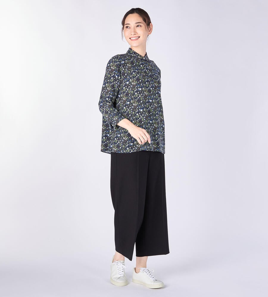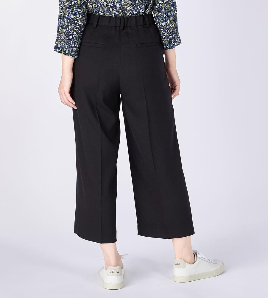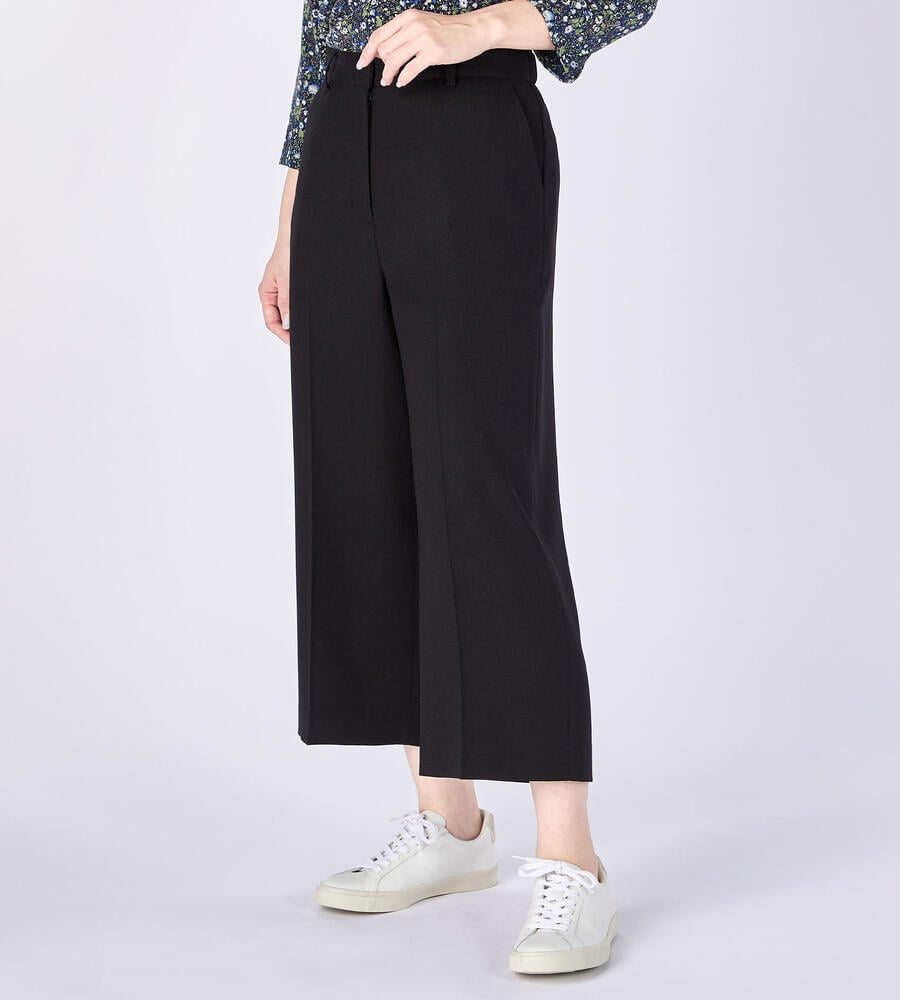 引き続きトレンドのワイド幅シルエットのパンツ。足首の見えるすっきりとしたアンクル丈で軽やかなムード。バックウエストはゴム仕様で快適な履き心地。サイドジップ仕様ですっきりとしたフロントデザイン。お手持ちのトップスに着こなしにプラスして、エレガントなコーディネートが完成するアイテムです。