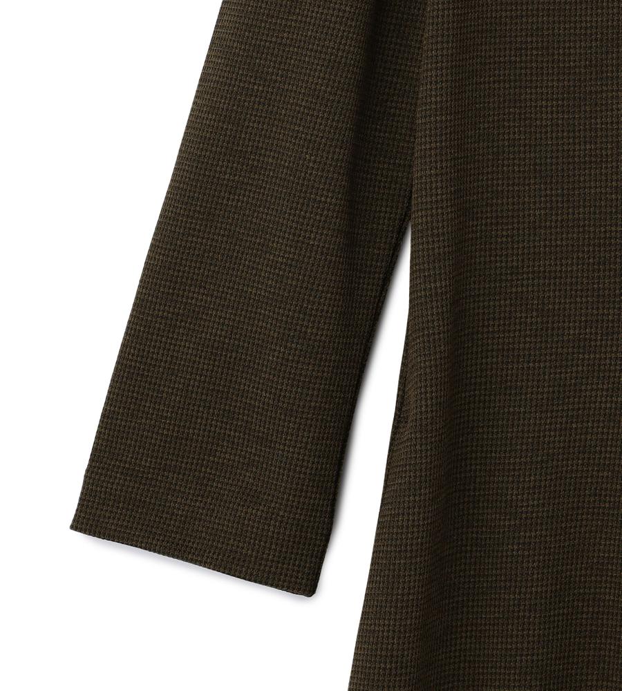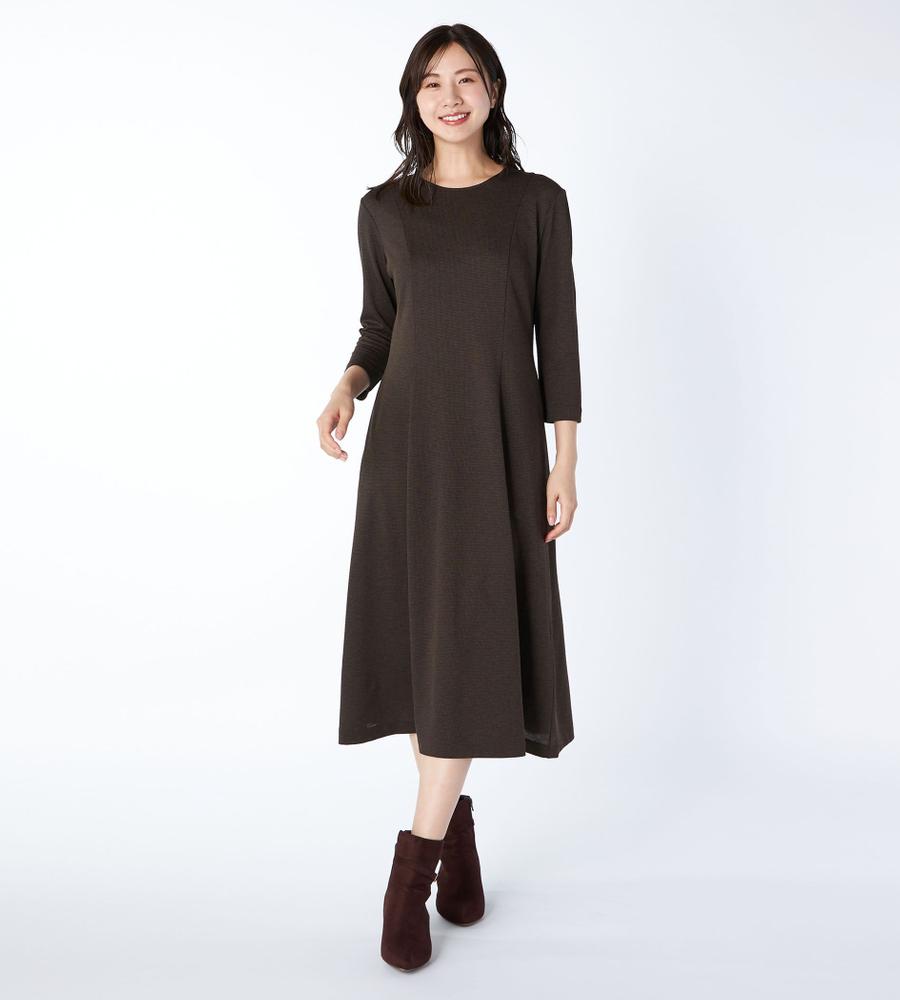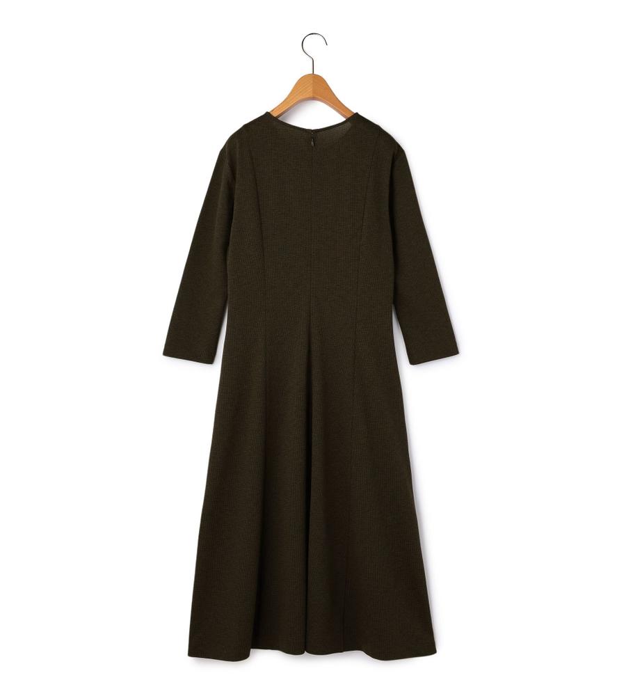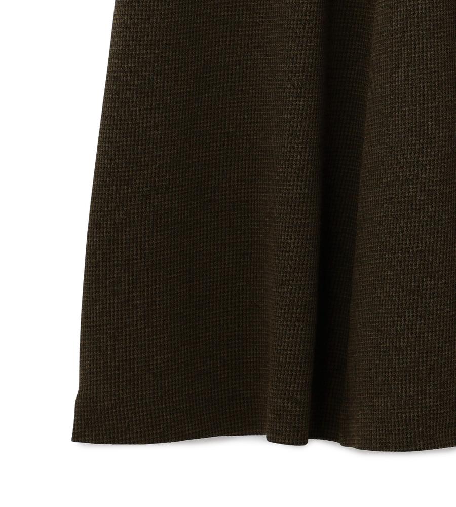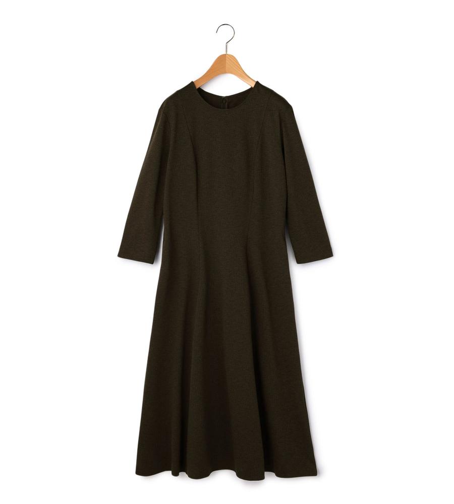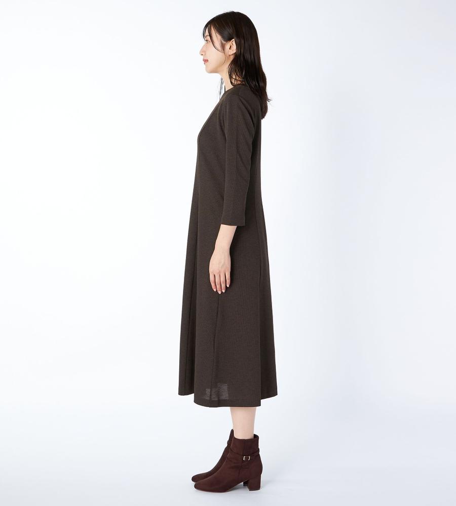 細かな千鳥格子柄がエレガントなデザインの長袖ワンピース。やわらかで伸縮性のある着心地快適な素材感のジャージー素材で仕立てた一枚。ウエストに絞りのある立体感のあるパターンが美しいシルエット。スカートはフレアなドレープ感のあるフェミニンなムード。一枚でおしゃれな着こなしが完成するアイテムです。