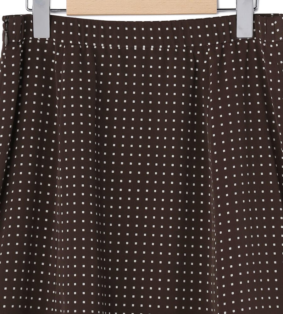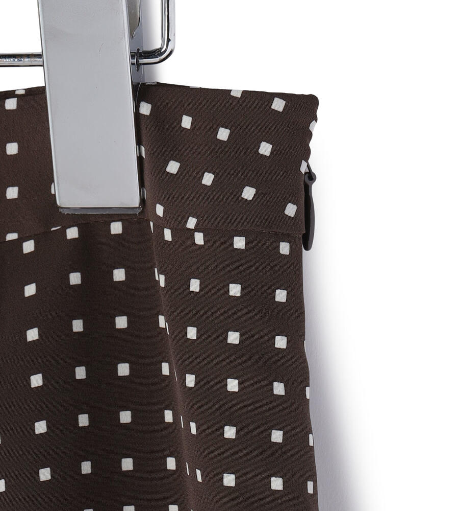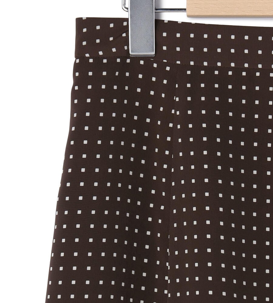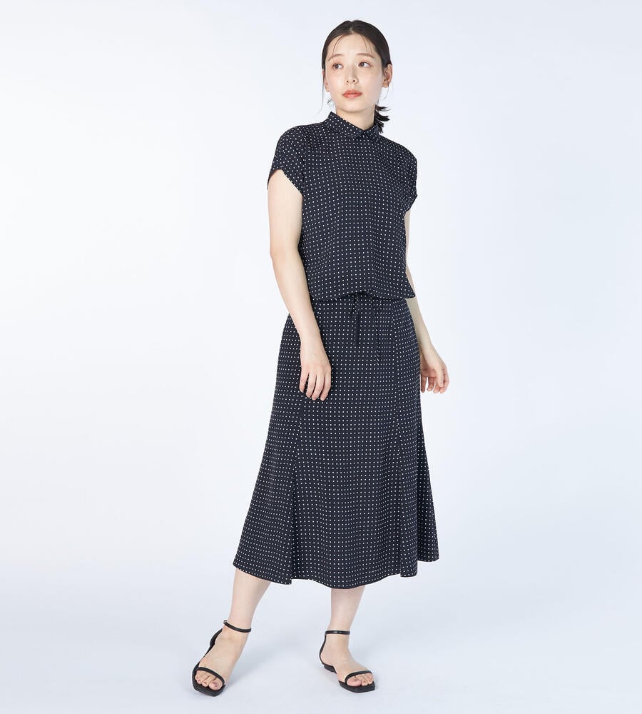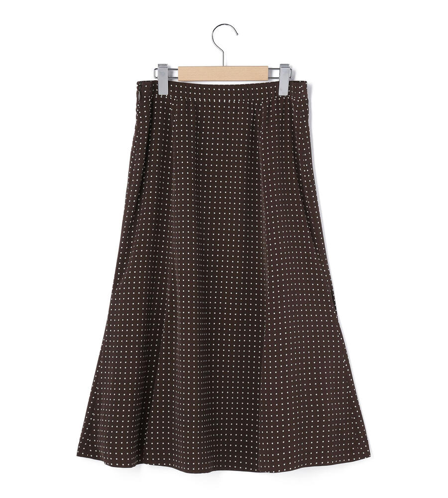 スクエア型のドットが規則正しく並ぶファブリックを用いたスカート。膝が隠れる長さと優雅に揺れるドレープで、着こなしをエレガントに映し出します。ウエストまわりはすっきりとしており、バランスの取れたスタイリングを演出。同素材のブラウスを合わせたセットアップスタイルもおすすめです。