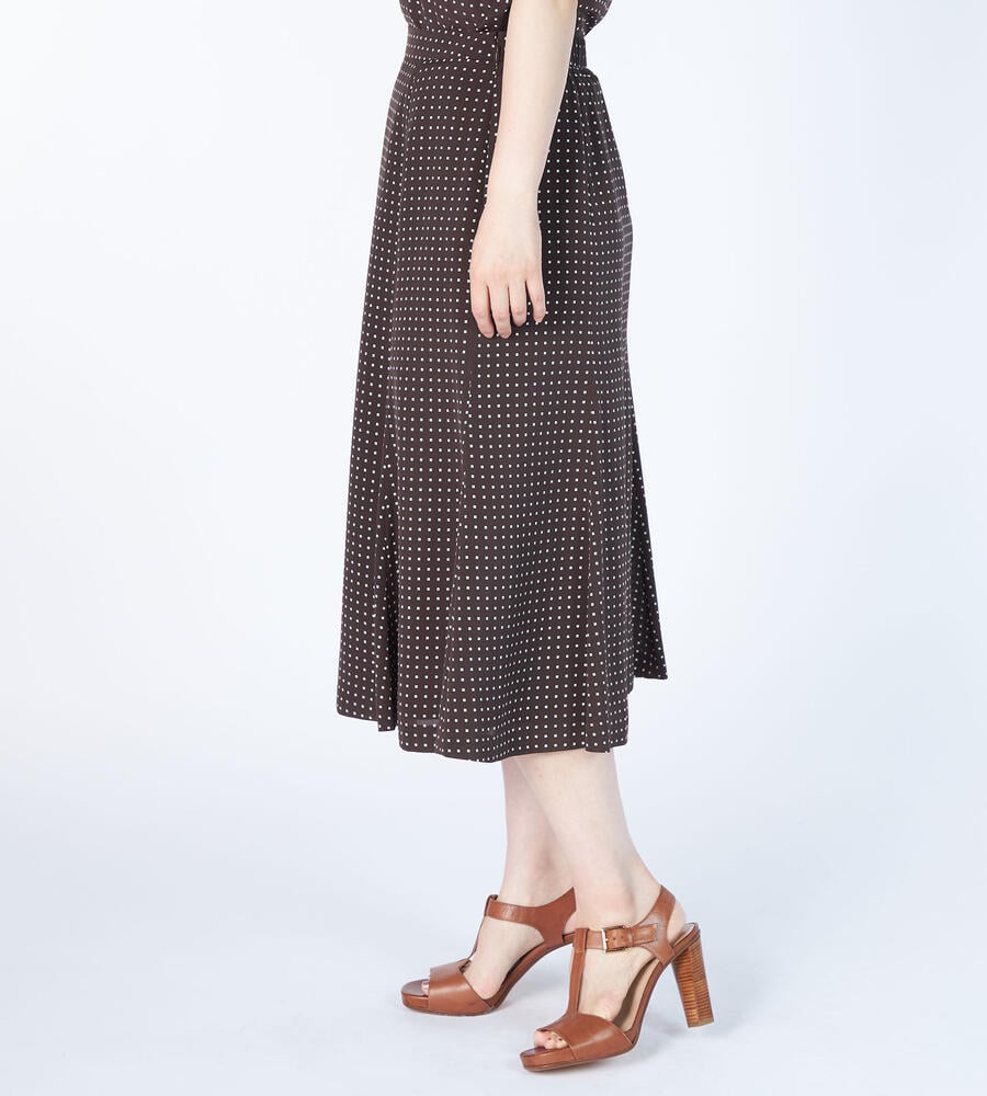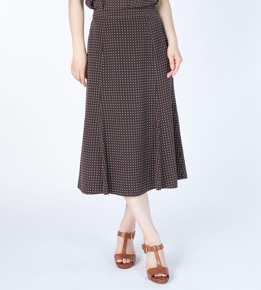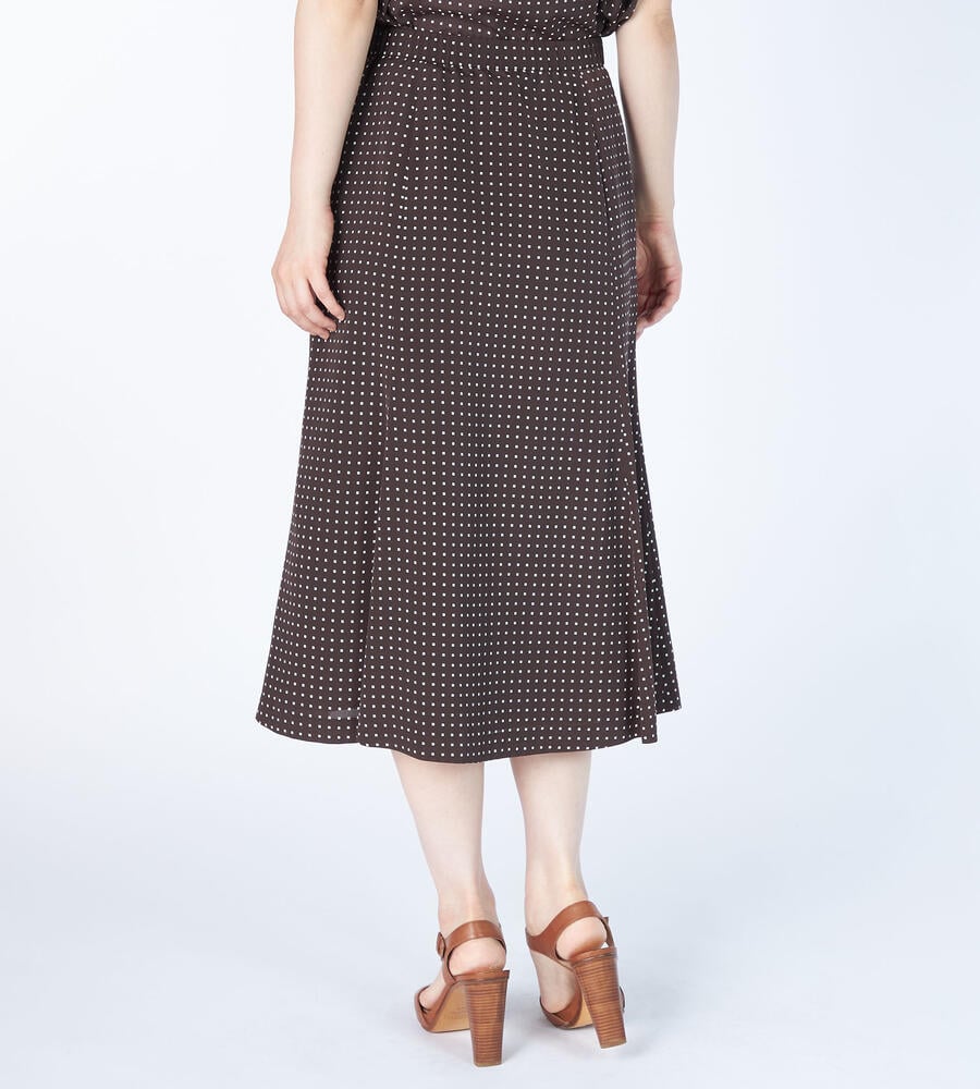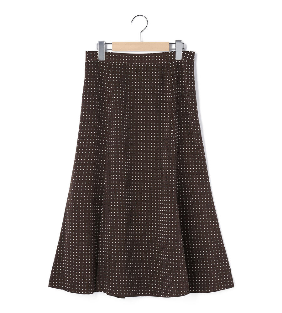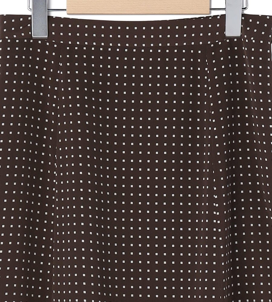スクエア型のドットが規則正しく並ぶファブリックを用いたスカート。膝が隠れる長さと優雅に揺れるドレープで、着こなしをエレガントに映し出します。ウエストまわりはすっきりとしており、バランスの取れたスタイリングを演出。同素材のブラウスを合わせたセットアップスタイルもおすすめです。