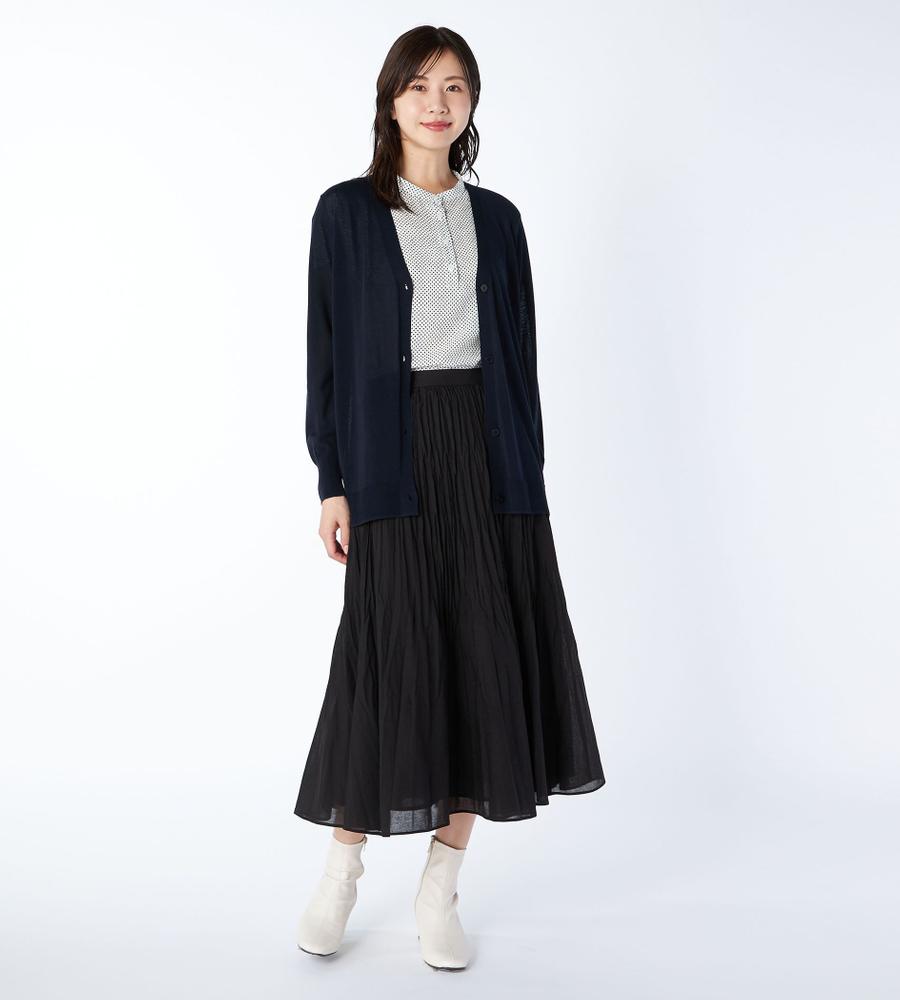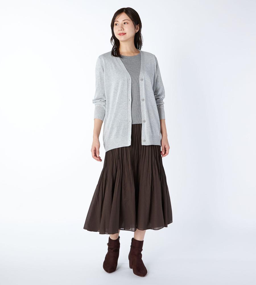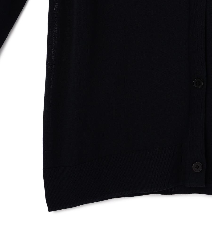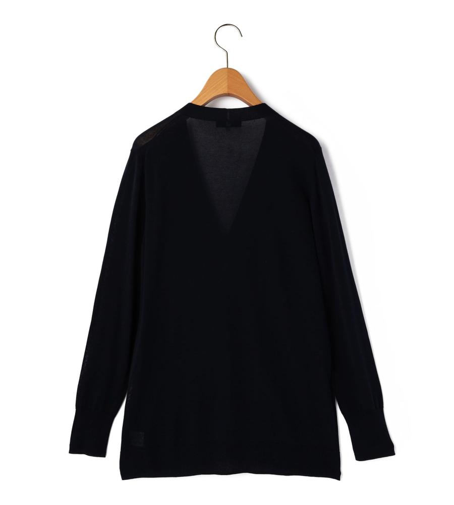 長めのリブと深めのVネックがスタイリッシュなムードの長袖ニットカーディガン。フロントはボタン仕様で重ね着に便利。コットンアセテート素材のさらっと軽やかな素材感も魅力。シンプル&スタンダードなデザインでトレンドに左右されず長く愛用できる一枚。毎日の着こなしで活躍する汎用性抜群のアイテムです。