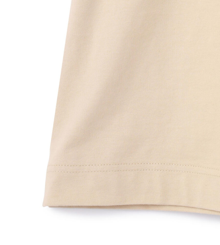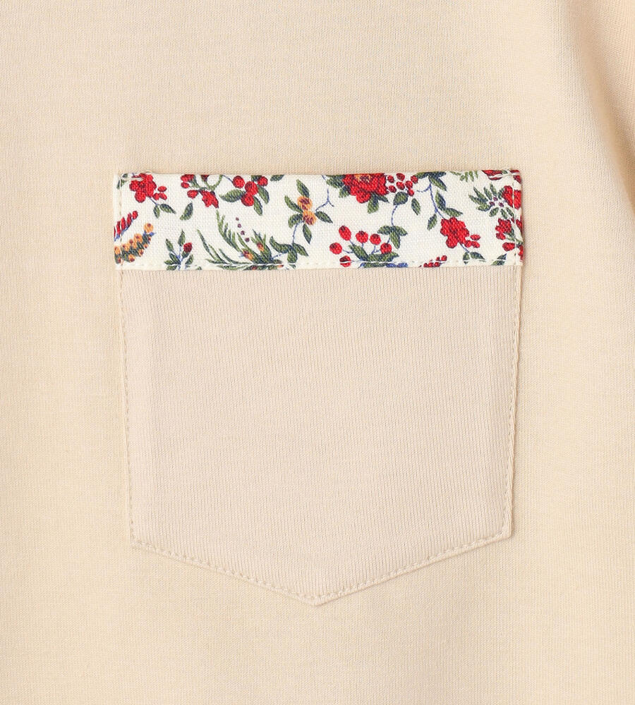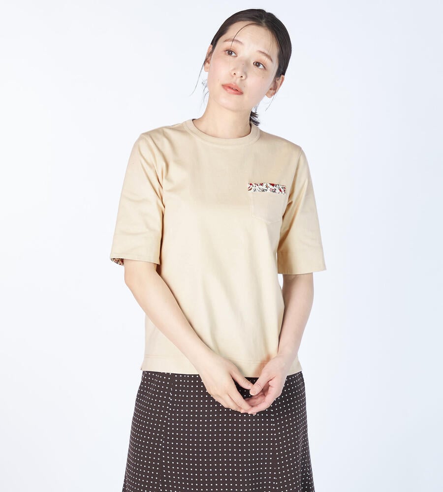 コットンに麻を織り交ぜた、ナチュラルな素材感が魅力のカットソー。胸元のポケットや袖裏にボタニカルプリントの布帛を添えて、華やかなアクセントを加えています。気負わずに着られるTシャツタイプながらも、袖を折り返すことで、さりげなく女性らしさが漂う仕上がり。デニムボトムスなどに合わせても、フェミニンな着こなしを楽しめます。