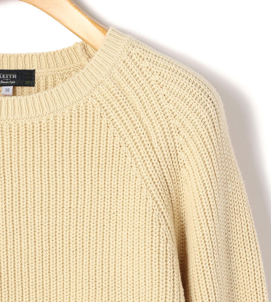 さりげなく切り替えた編み地がモダンスタイリッシュな表情のニットです。シンプルな中にもこだわりが光る、大人のデイリーカジュアルにぴったりな一着。袖先はやや膨らみを持たせフェミニンなエッセンスをプラスしています。