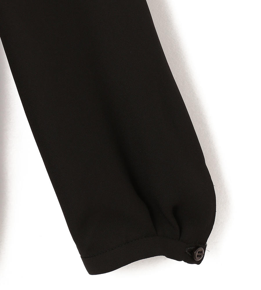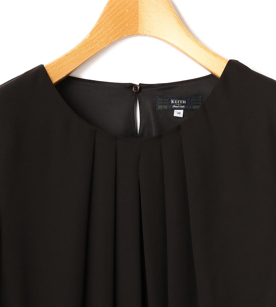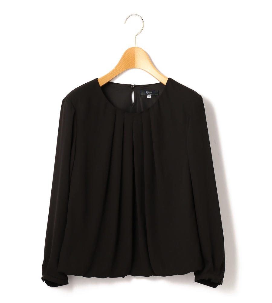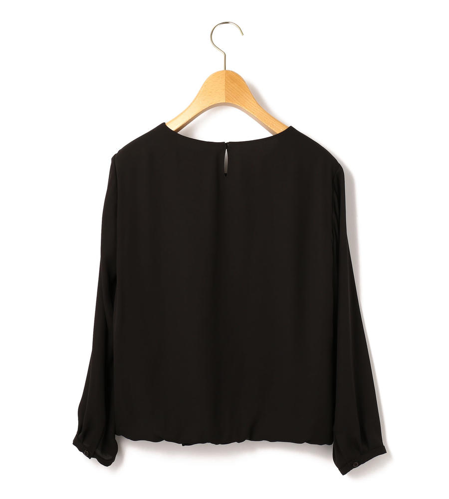 しなやかなシルキージョーゼット素材で仕立てたロングスリーブブラウスです。ネックラインにタックをほどこし流れるように美しいドレープを表現。バックネックはボタン×スリットデザイン。オケージョンにも対応するシンプルエレガントなルックスは幅広いシーンで活躍します。