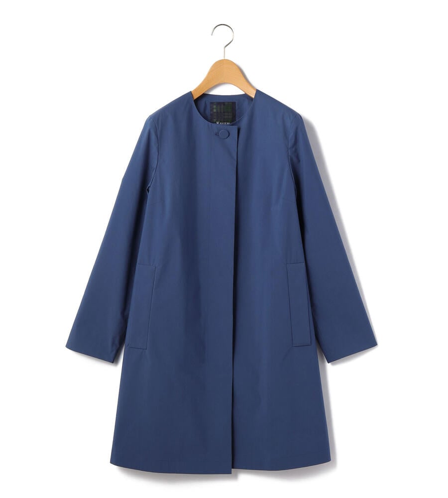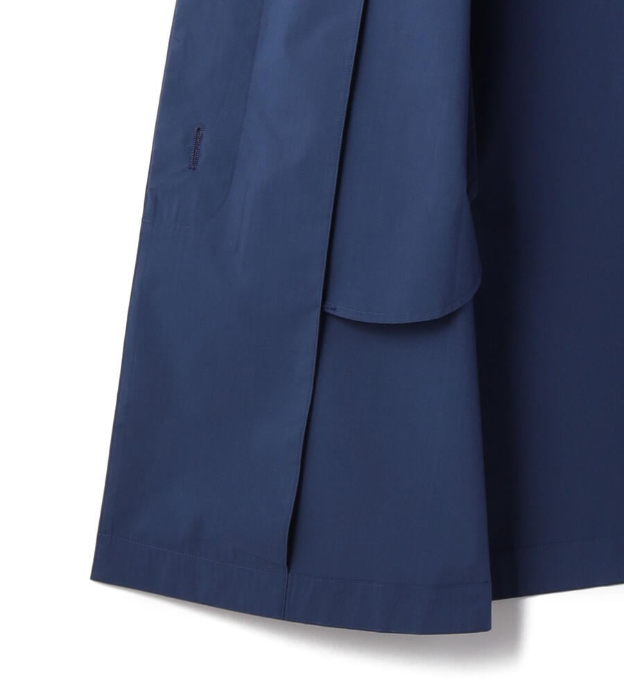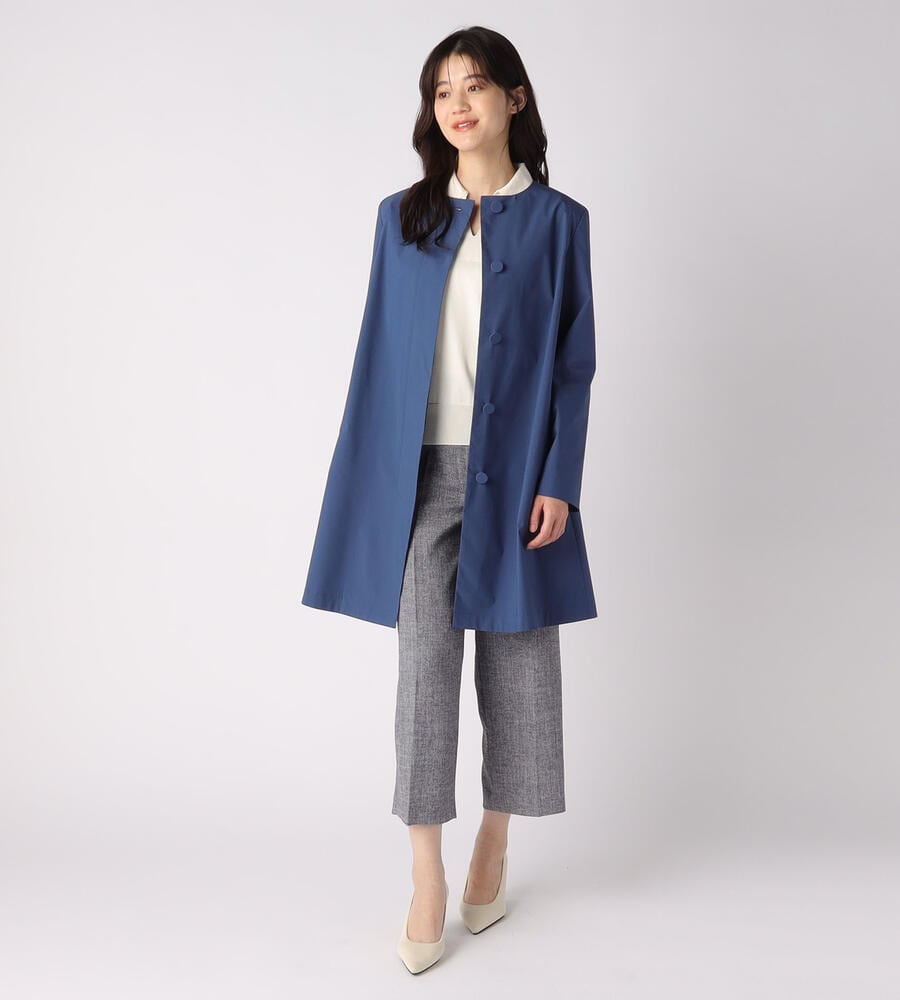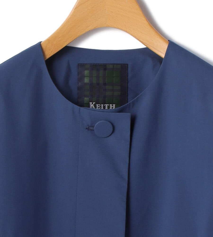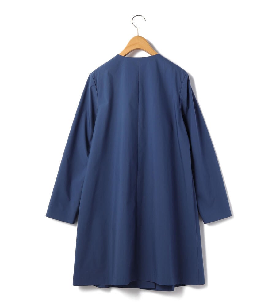 ポリエステル混コットンで綿のさわやかなタッチとハリのあるコンパクトな表面感が特徴の撥水加工を施した生地を使用した、軽やかな着心地のノーカラーコートです。裏地を省いた一重仕立てで、動きやすさを兼ね備えています。シンプルな前立てにアクセントを効かせる、トップの包みボタンが温かみをプラス。オンオフ兼用で合わせられ、デイリーにマルチに活躍します。