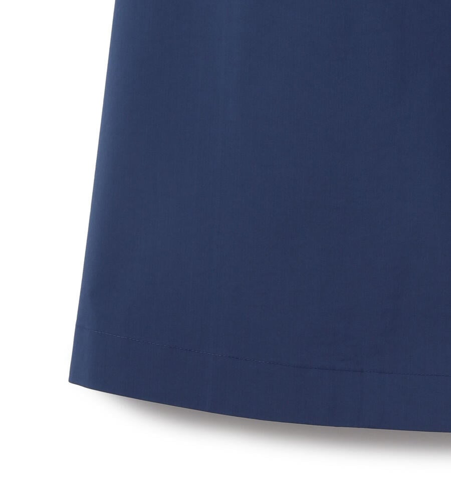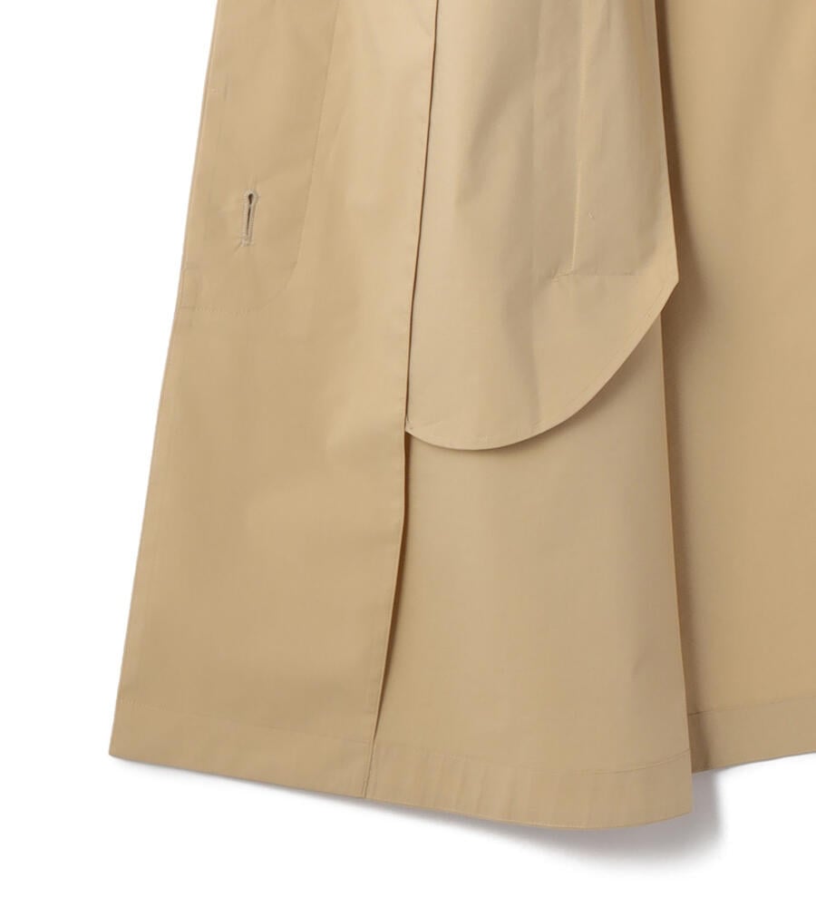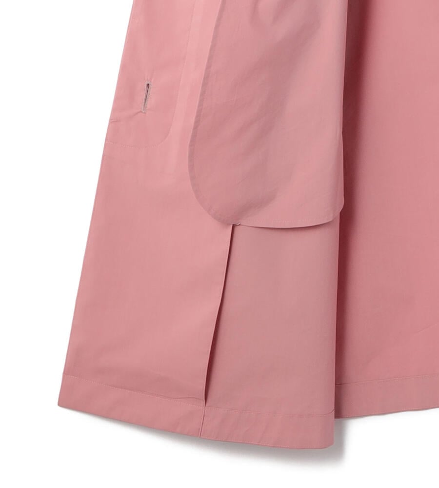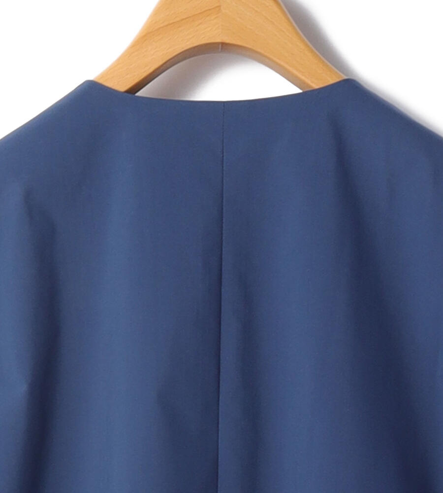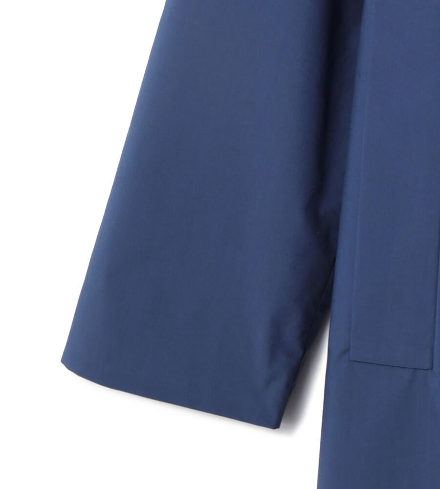 ポリエステル混コットンで綿のさわやかなタッチとハリのあるコンパクトな表面感が特徴の撥水加工を施した生地を使用した、軽やかな着心地のノーカラーコートです。裏地を省いた一重仕立てで、動きやすさを兼ね備えています。シンプルな前立てにアクセントを効かせる、トップの包みボタンが温かみをプラス。オンオフ兼用で合わせられ、デイリーにマルチに活躍します。