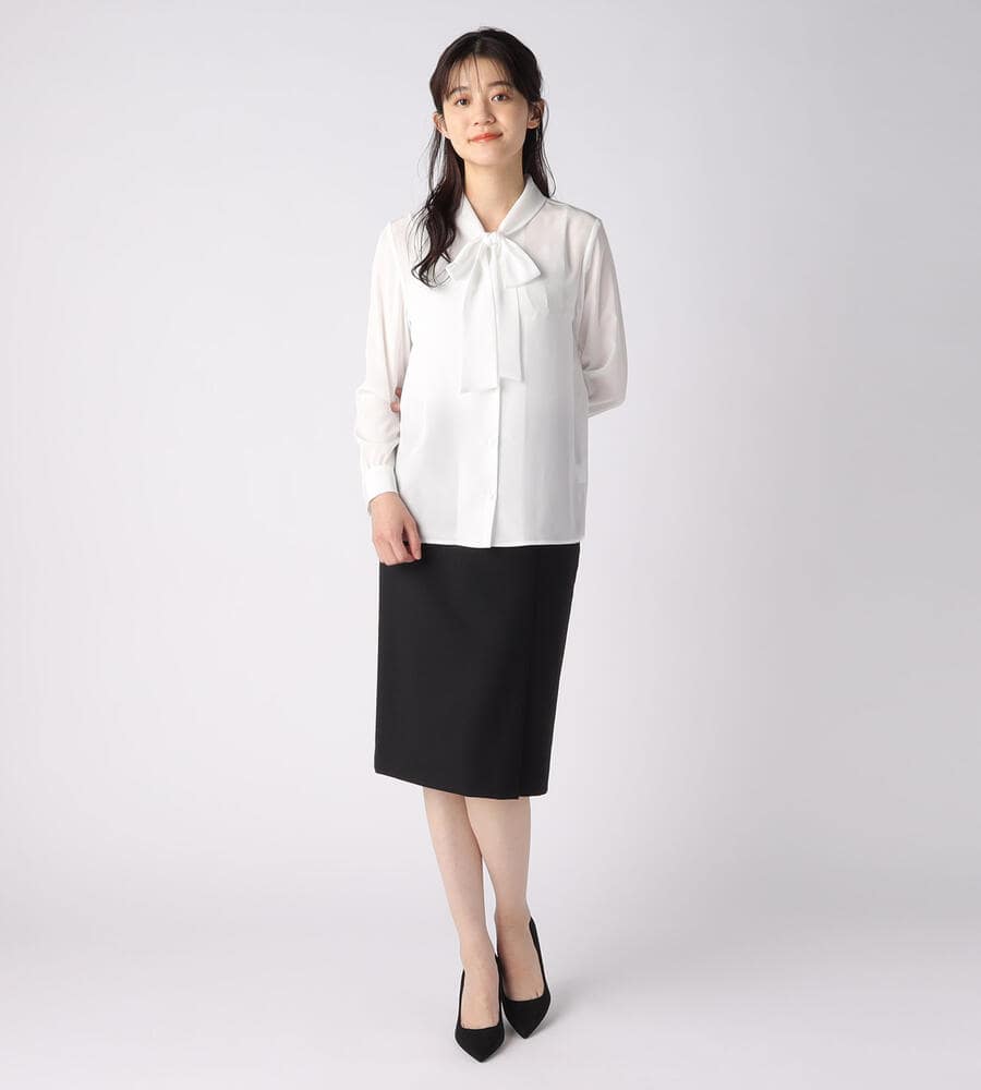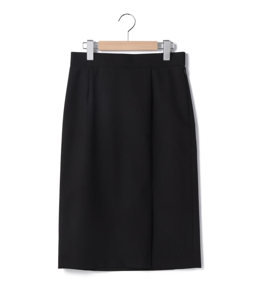 左サイドに寄せたフロントタックで、ラップ風デザインに仕上げたタイトスカートです。すっきりシルエットでも立体感があり、コーディネートにほどよいアクセントを効かせてくれるアイテム。細番手の糸を高密度の平織りにし仕上げた生地で、クリーンな表面感が魅力。シンプルで着回しやすく、オンオフ問わずに取り入れられます。