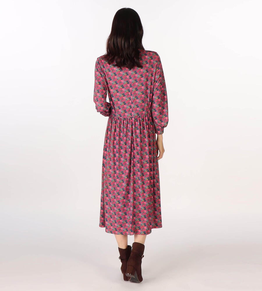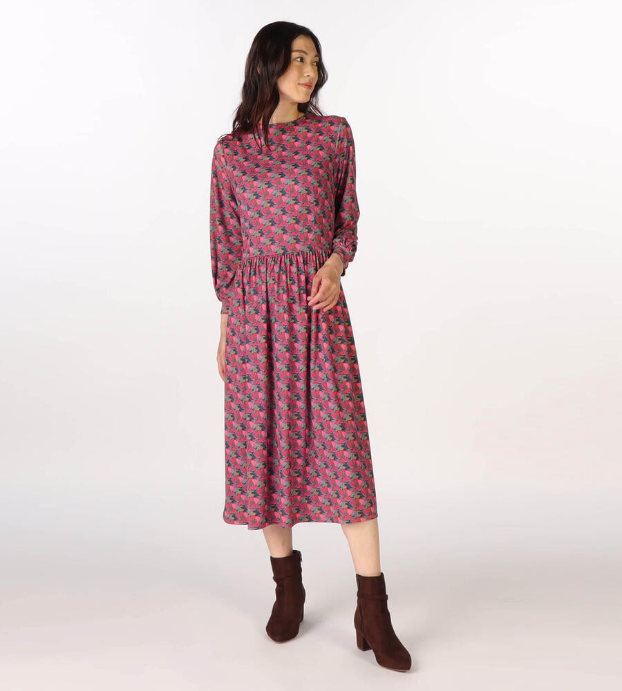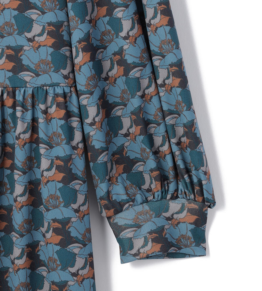 イギリス・ロンドンのLIBERTY社が手がけるリバティプリントで仕立てたスタイリッシュな長袖ワンピース。華やかなフラワープリントが印象的なデザイン。ウエスト切り替えでロング丈でもスタイル良くきこなせます。ドレープ感のあるフェミニンなシルエット。一枚でおしゃれな着こなしが完成します。