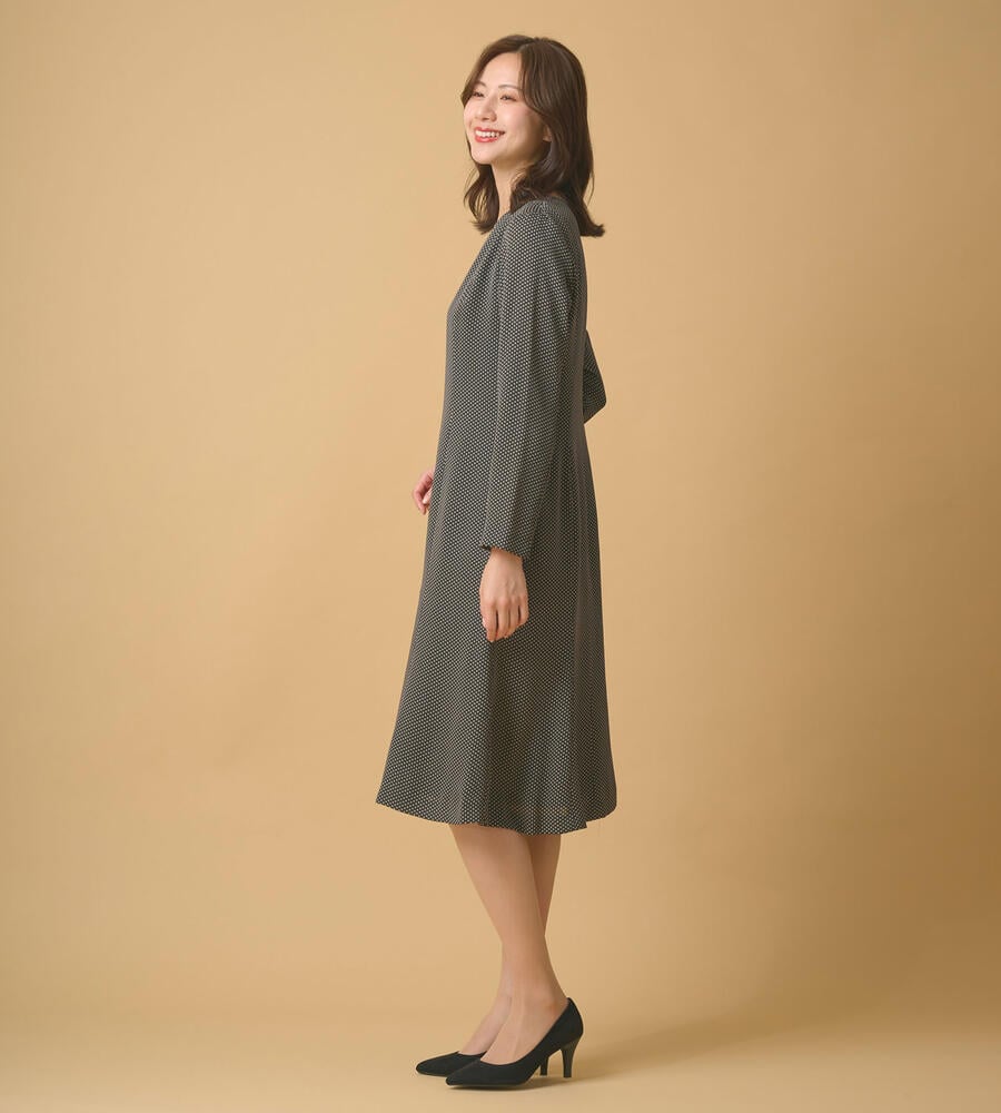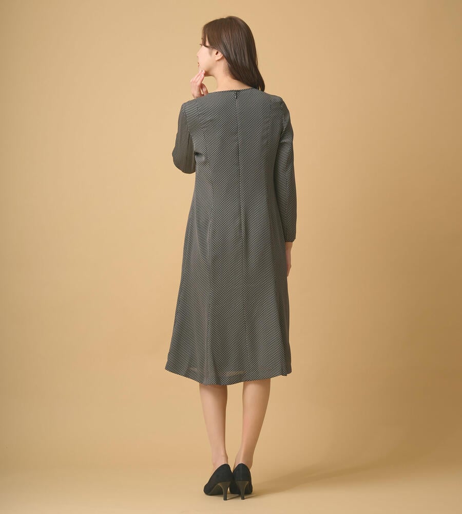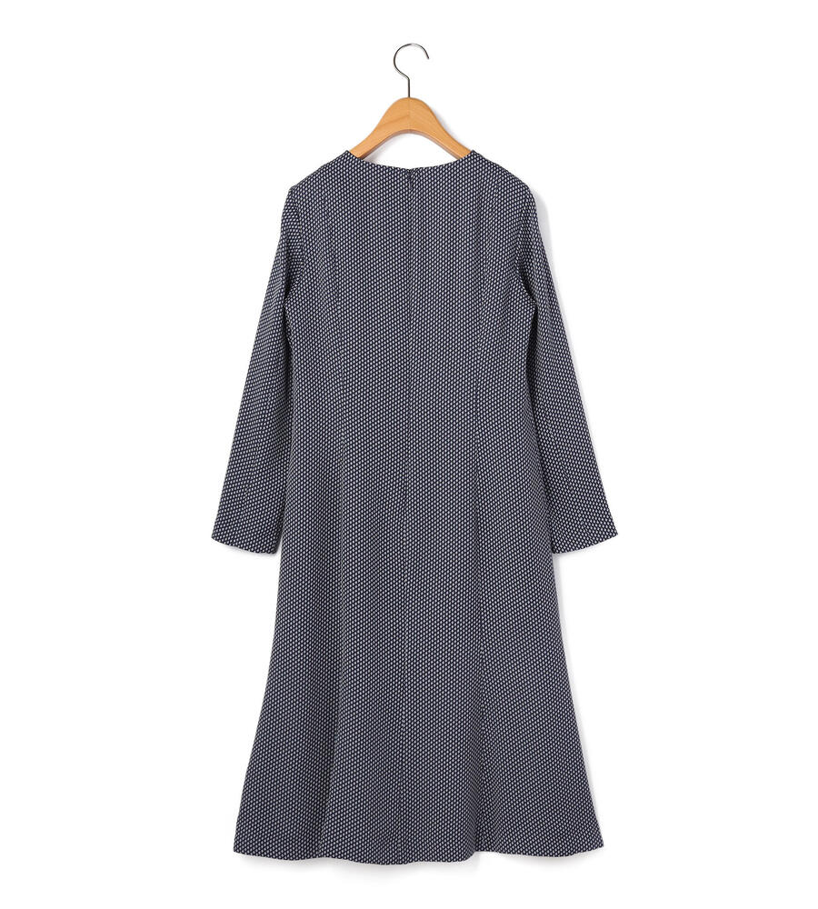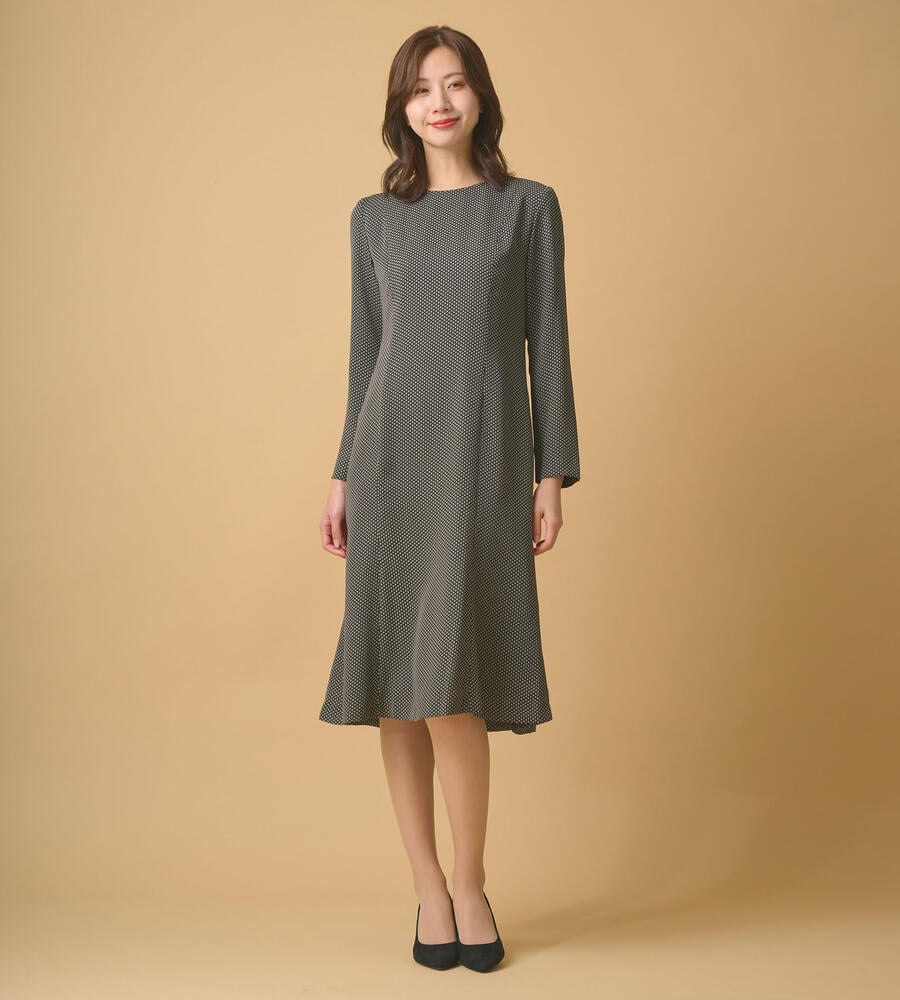 グラフィカルなスクエアパターンのプリントがスタイリッシュなデザインの長袖ワンピース。裾に向かって広がるフレアなスカートのラインがフェミニンなムード。ダーツの入った立体感のある美しいシルエットもエレガントなポイント。おしゃれなお出かけコーディネートが一枚で完成するアイテムです。