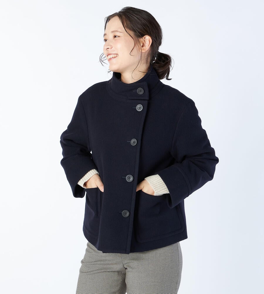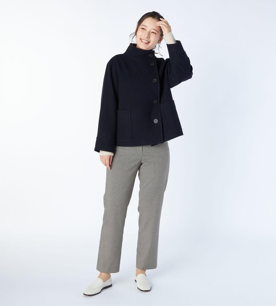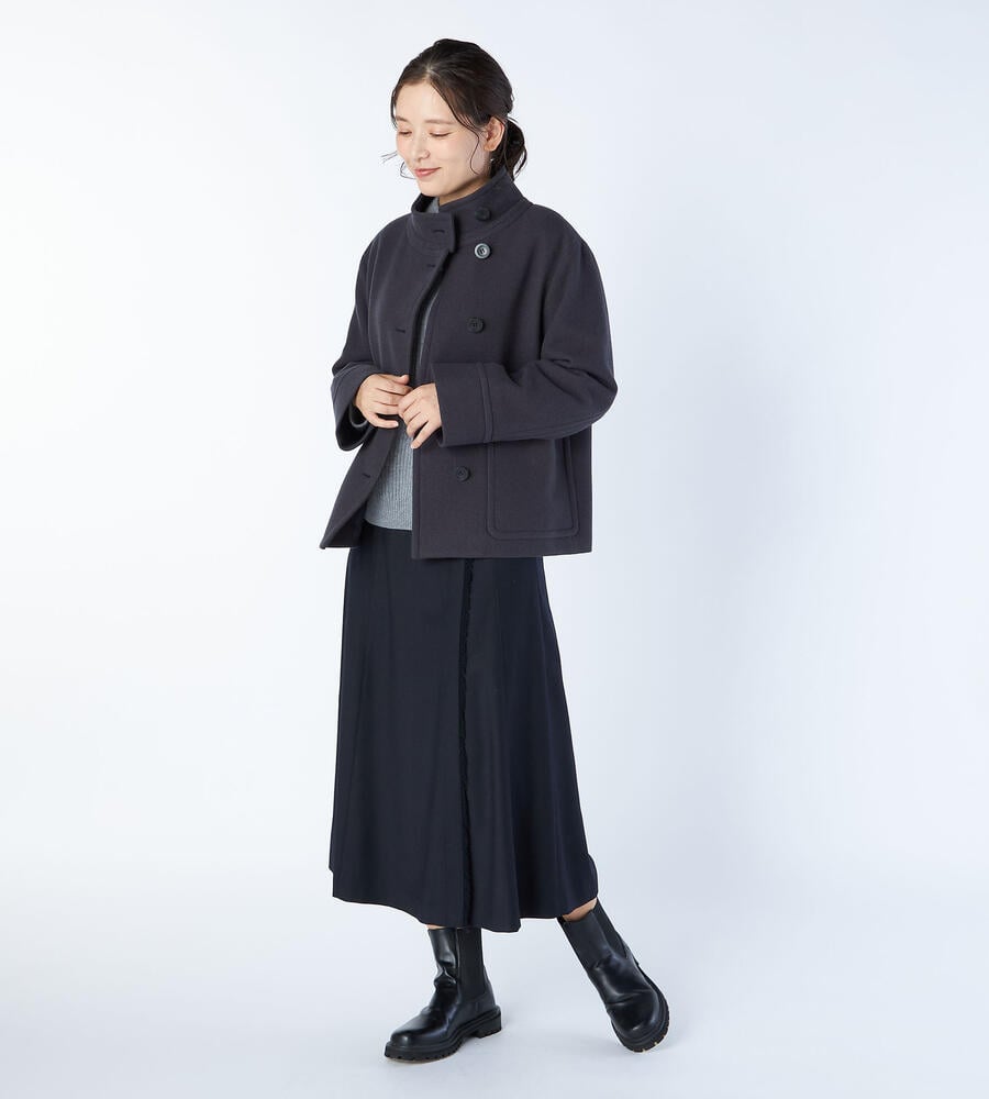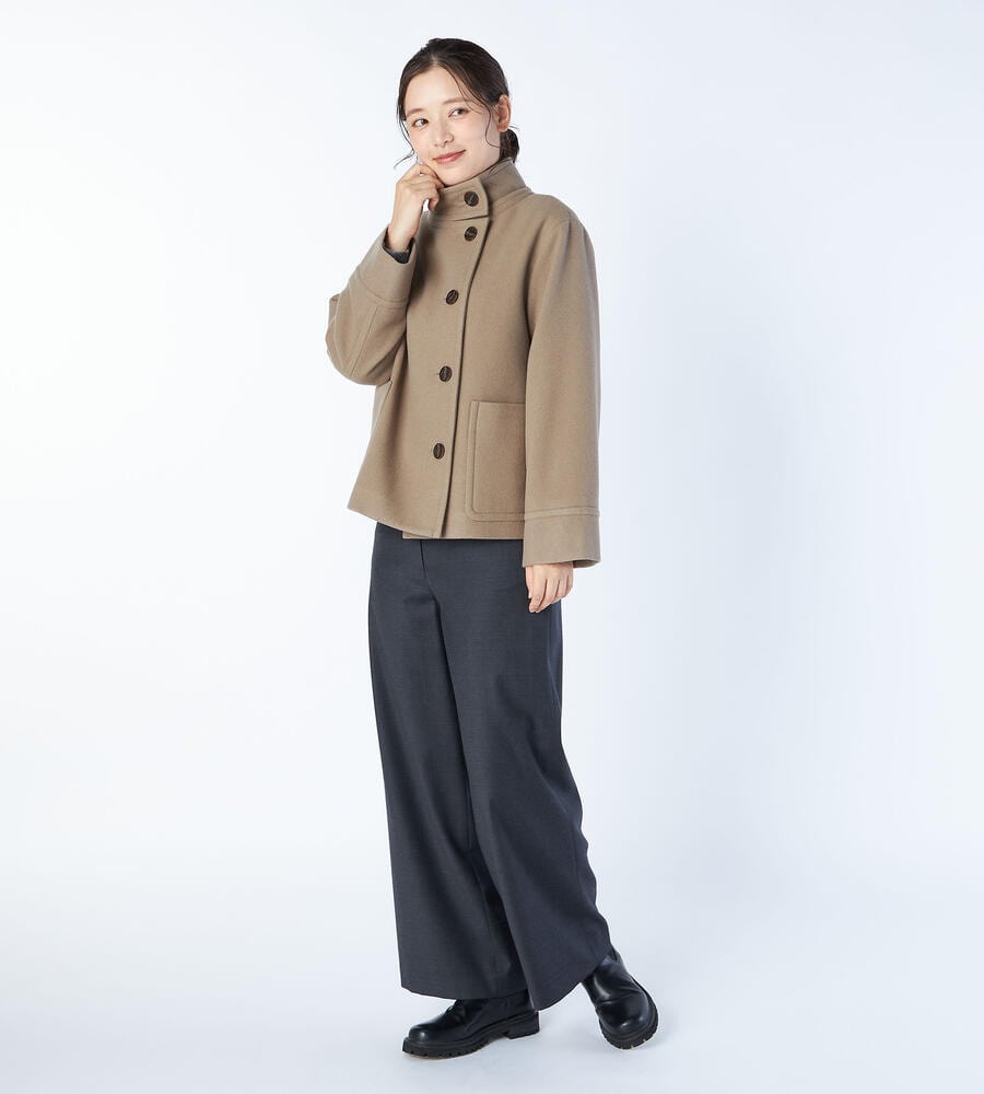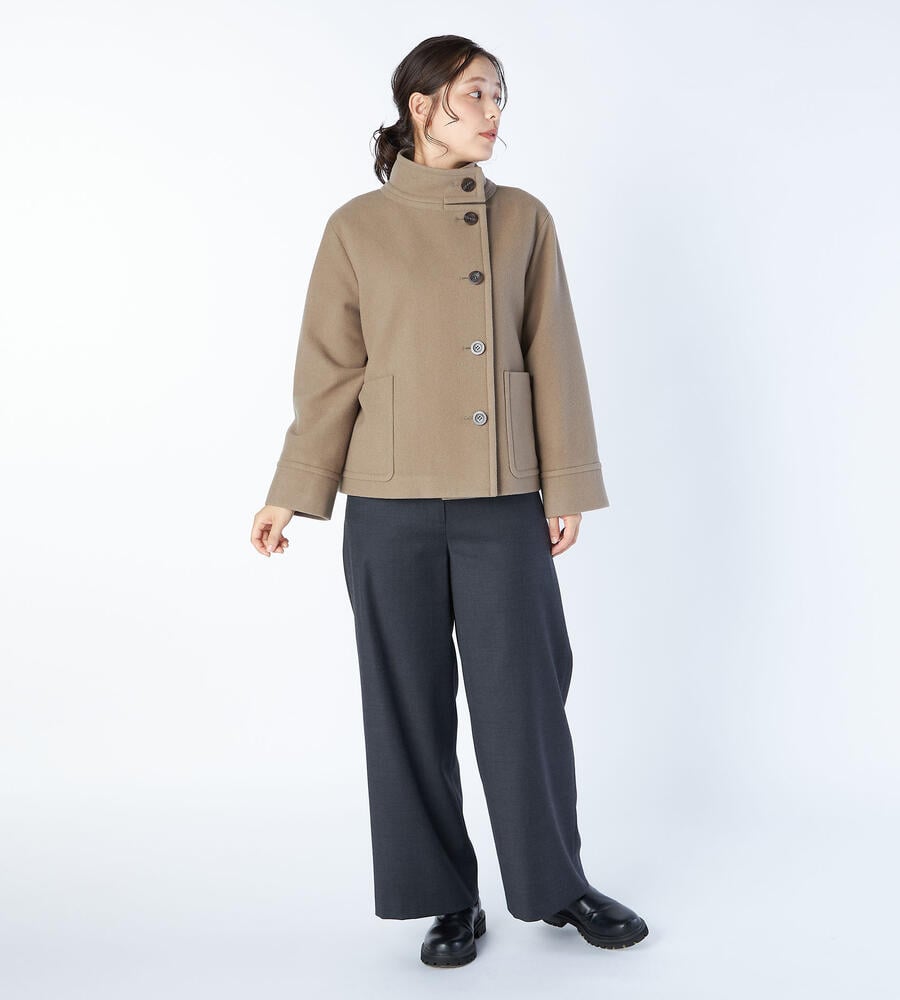 大きめのボタン、左右に配置したパッチポケットがデザインポイントになったシングルモッサーコート。軽やかな着丈はコーディネートバランスが取りやすく、さらりと羽織れるのも嬉しい。首まわりをあたたかく包み込むスタンドカラー。ゆったりとしたスリーブで着心地にもこだわり仕上げています。