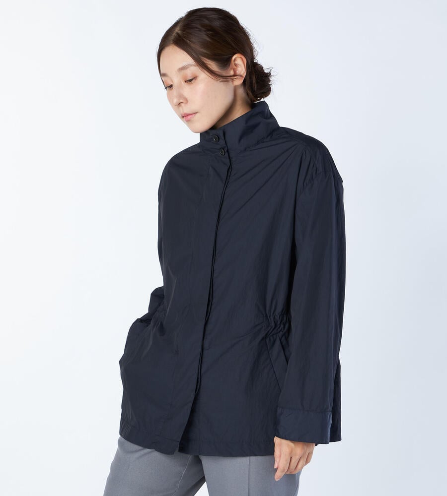 裏地なしのナイロンタフタ生地で、季節の変わり目のライトアウターとして重宝するジャケットです。洗練されたスタンドカラーや比翼仕立てなどがデザインのポイント。ウエスト部分のドロストでシルエットのアレンジも楽しめます。カジュアルながらも気品があり、大人の女性に最適なアイテムです。
