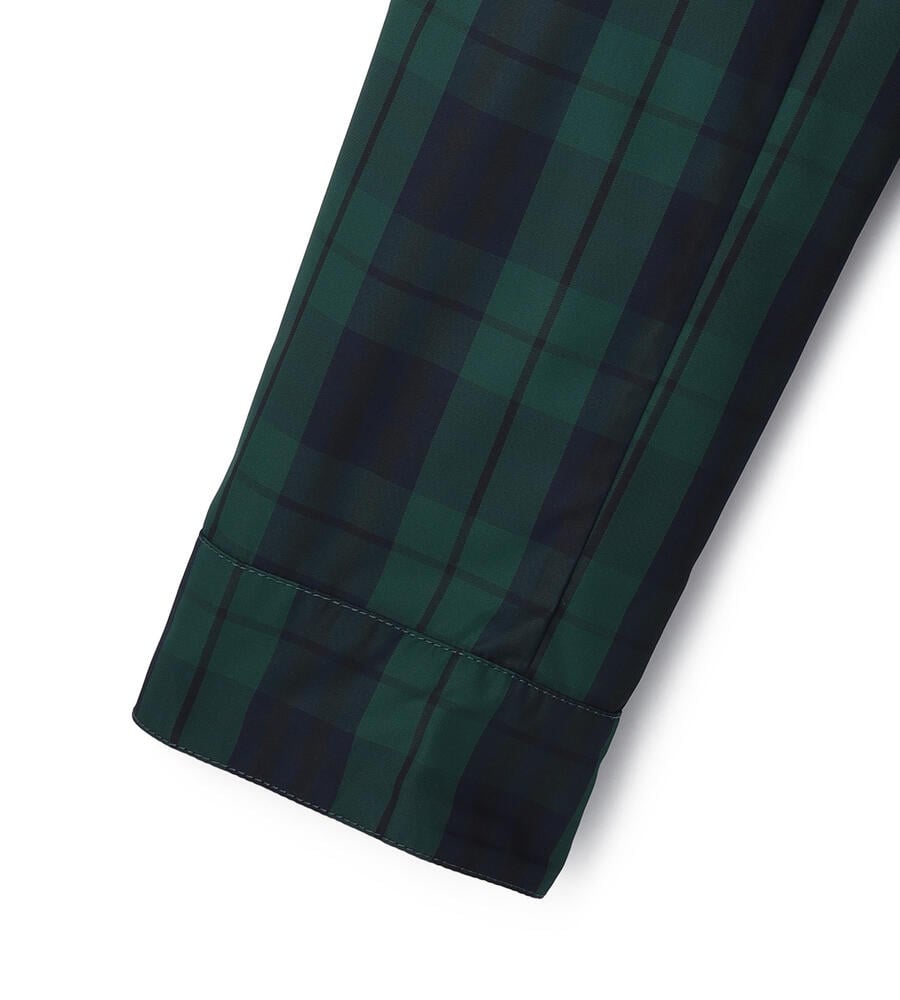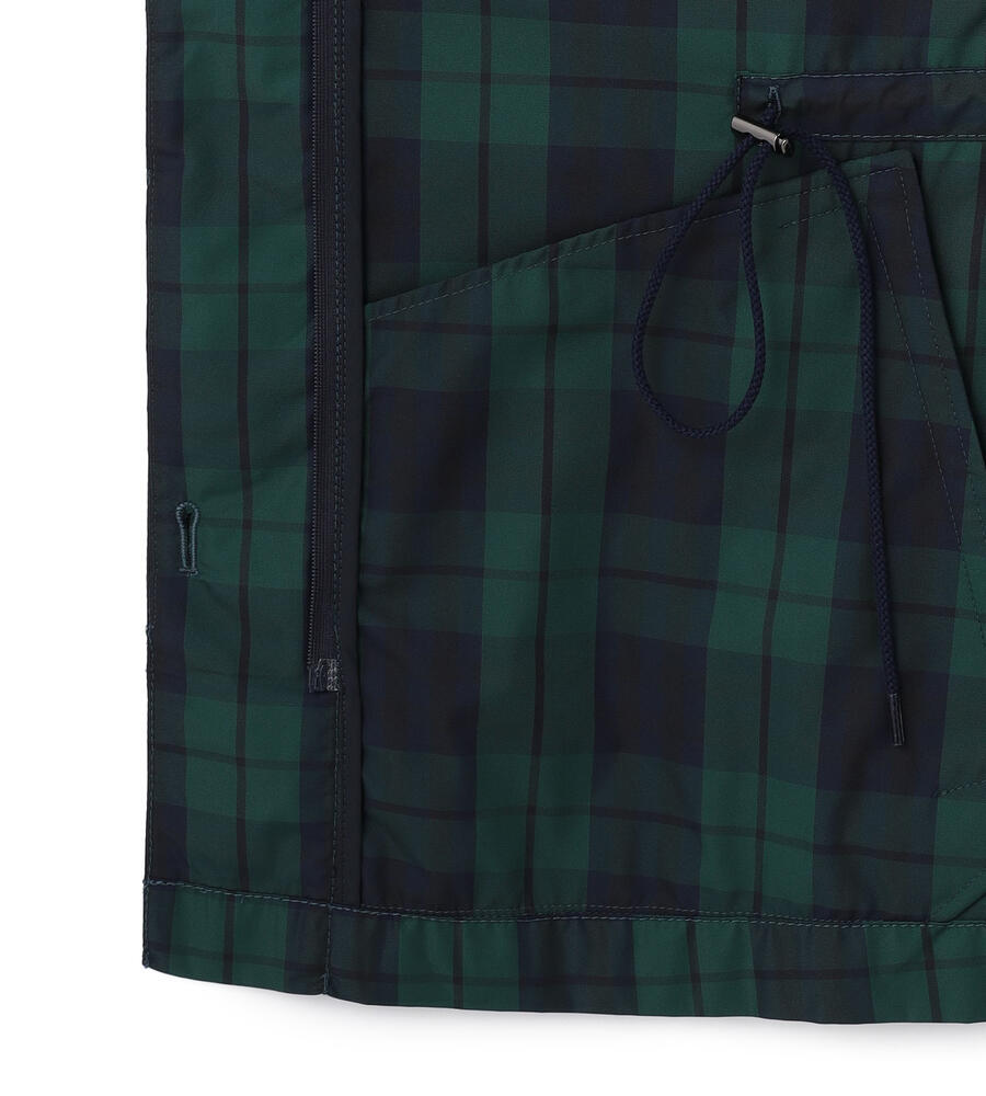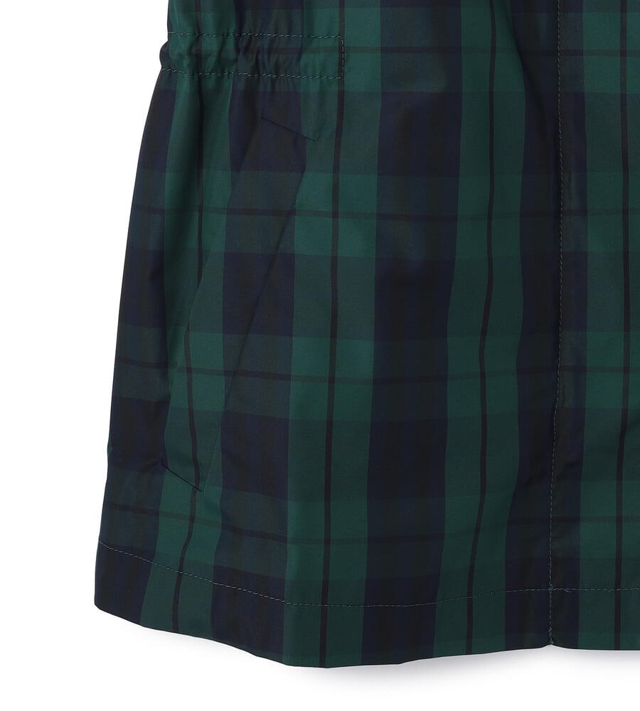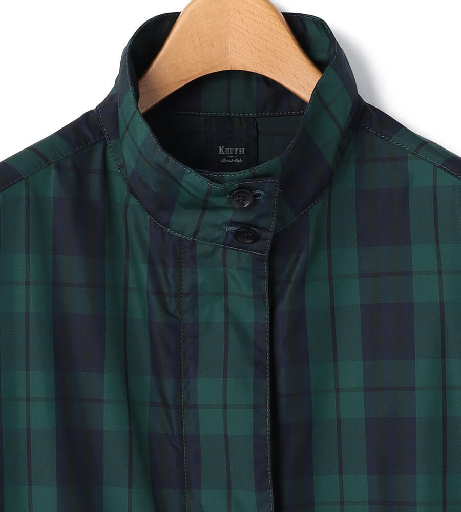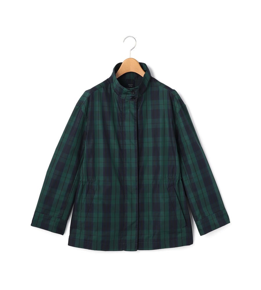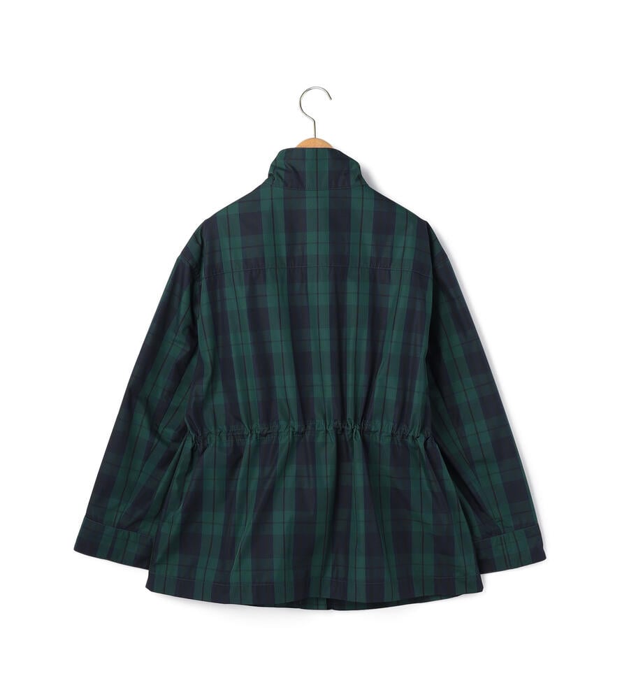 トラッドで上品なチェック柄のスタンドカラージャケット。微光沢とハリのあるタフタ生地を使用し、すっきりとしたサイズ感に仕上げています。フロントはシンプルな比翼仕立てを採用。ウエスト部分のドロストでシルエットのアレンジも楽しめます。季節の変わり目の軽い羽織りに重宝するアイテムです。